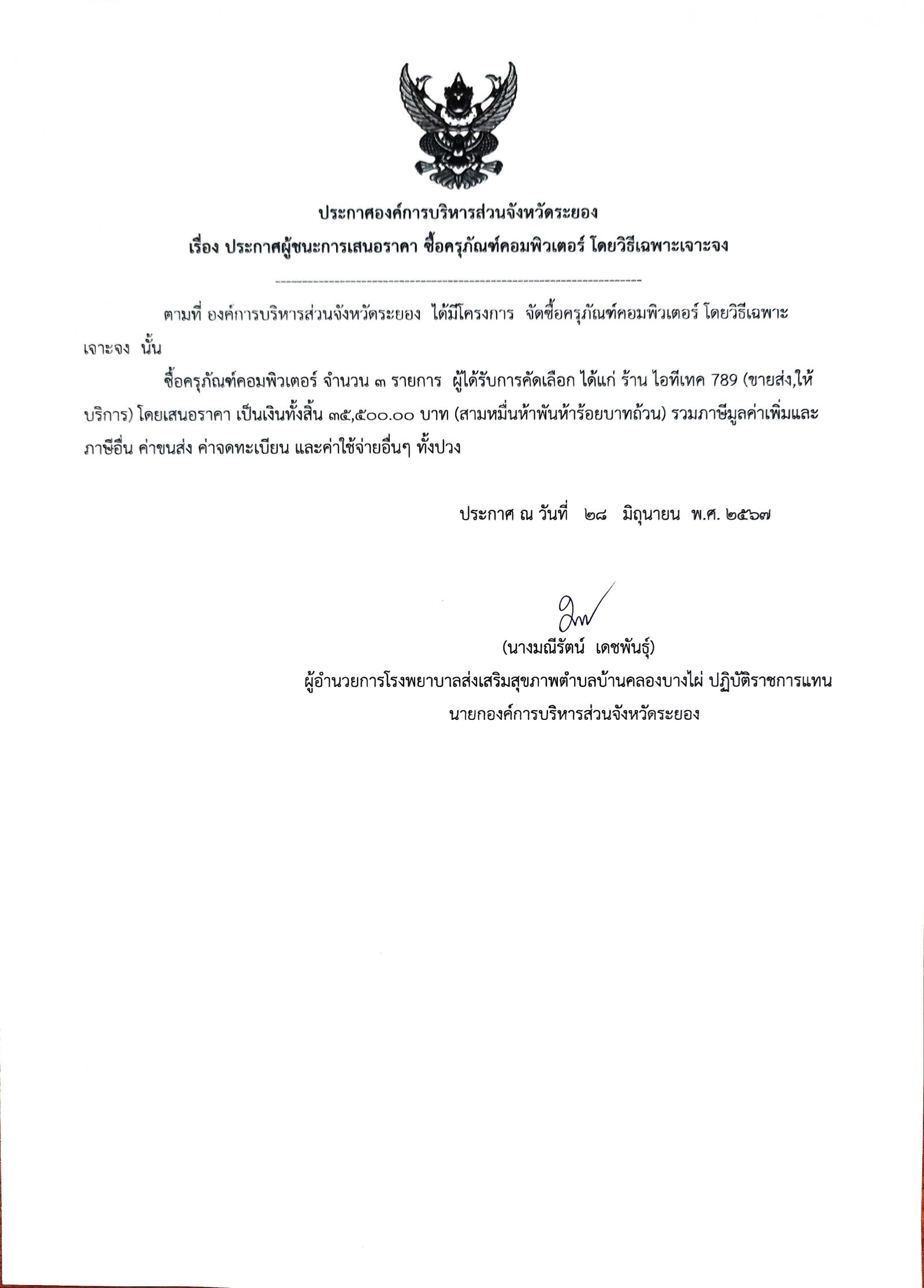 ประกาศผู้ชนะการเสนอราคา ซื้อครุภัณฑ์คอมพิวเตอร์ โดยวิธีเฉพาะเจาะจง