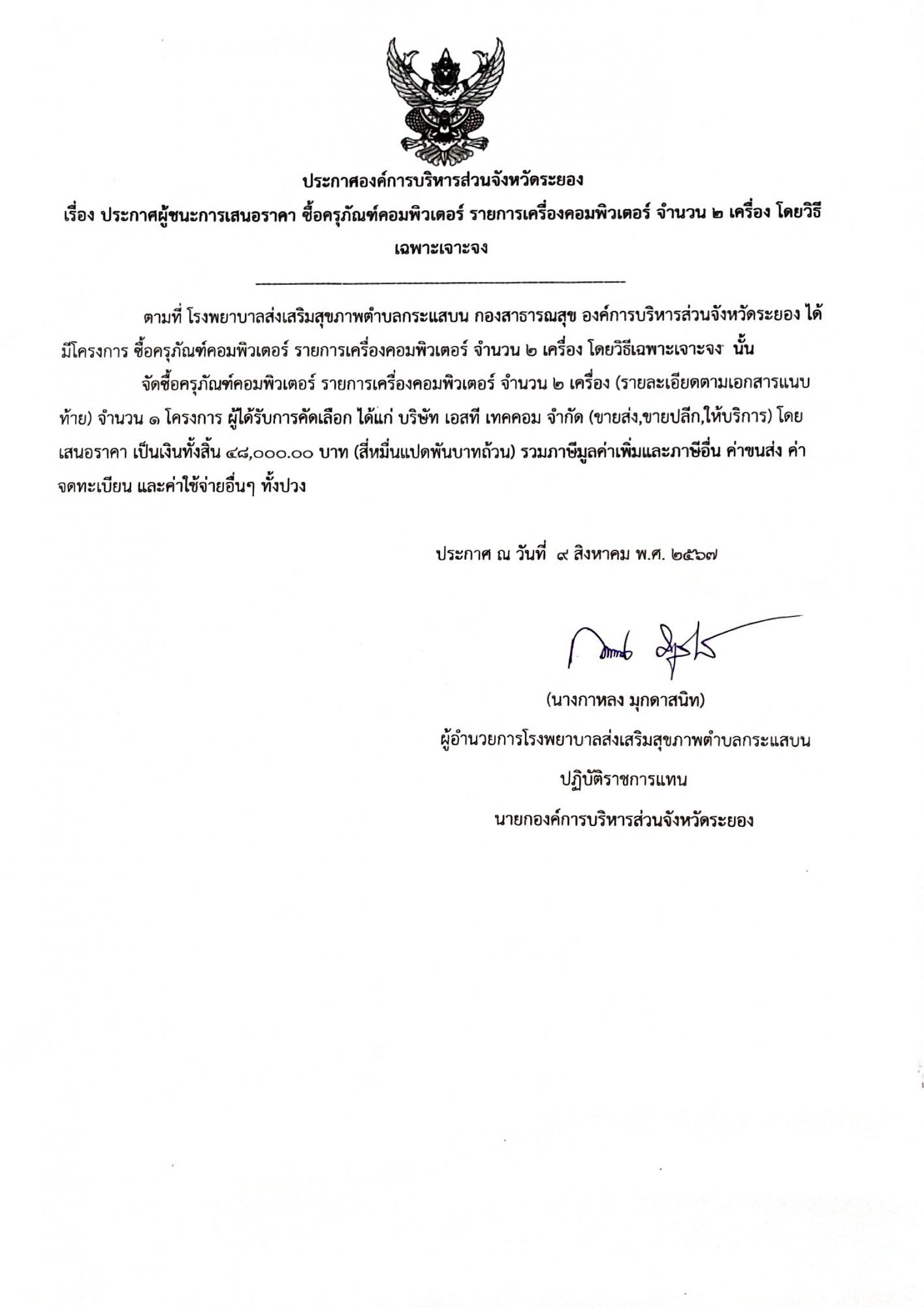 ประกาศผู้ชนะการเสนอราคา ซื้อตรุภัณฑ์คอมพิวเตอร์ รายการเครื่องคอมพิวเตอร์ จำนวน 2 เครื่อง โดยวิธีเฉพาะเจาะจง