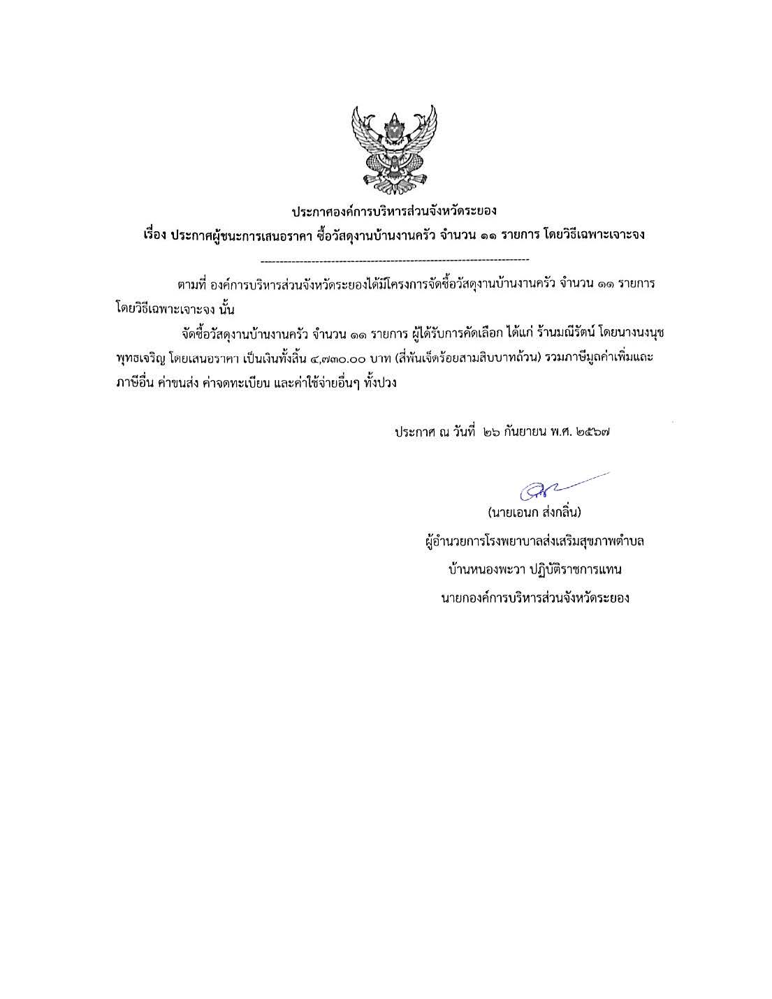 ประกาศผู้ชนะการเสนอราคา ซื้อวัสดุงานบ้านงานครัว จำนวน 11 รายการ โดยวิธีเฉพาะเจาะจง
