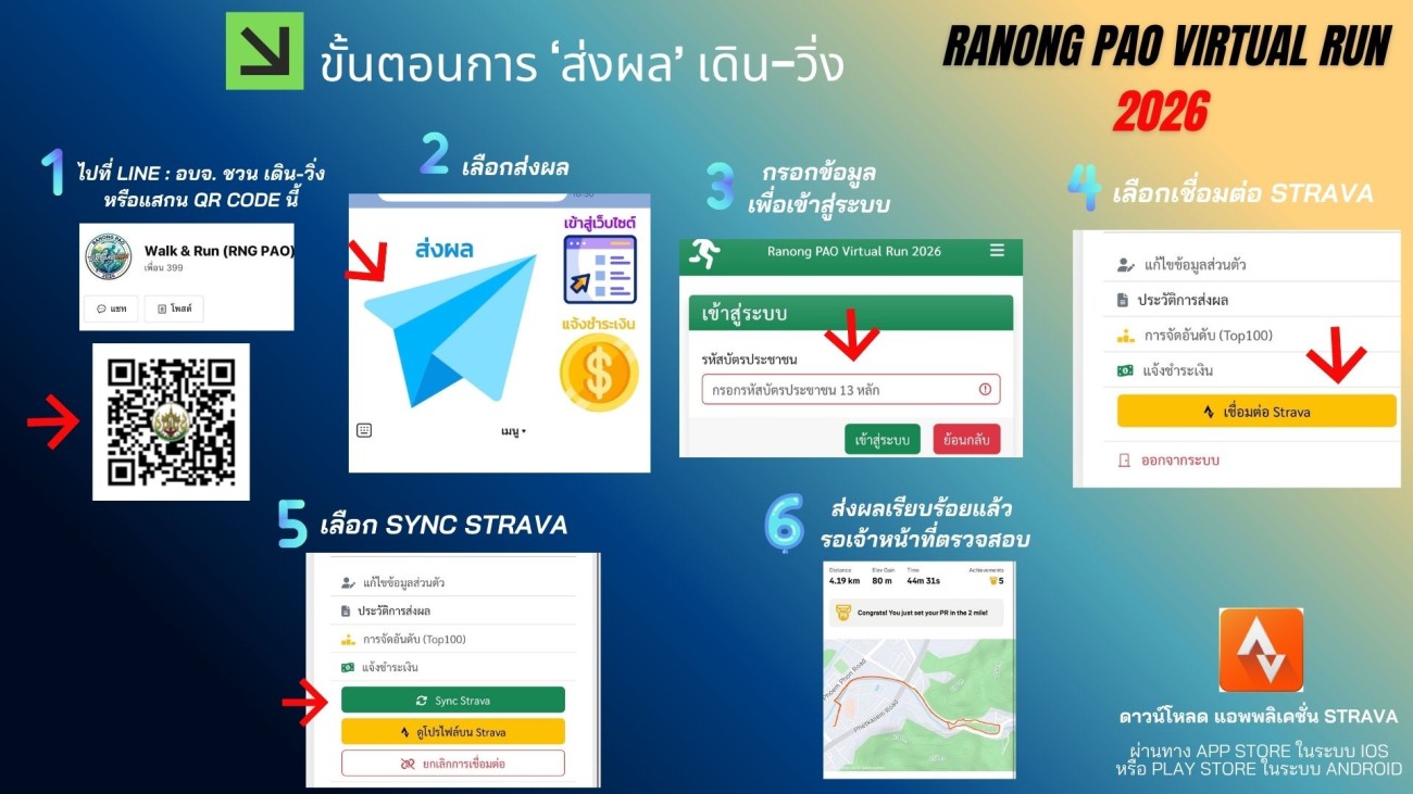 ข่าวประชาสัมพันธ์ ขอเชิญเข้าร่วมกิจกรรมเดินวิ่งสะสมระยะทาง (ฺVirtual Run) ตามโครงการเดินวิ่งเพื่อสุขภาพ อบจ.ระนอง (Walk & Run Ranong PAO) ประจำปี ๒๕๖๙