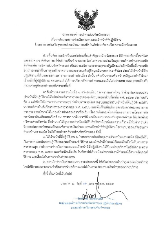 Compensation Criteria for Staff at Ban Koh Samet Health Promoting Hospital Under the Rayong Provincial Administrative Organization (Rayong PAO)