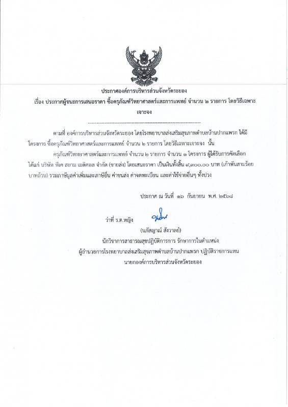 ประกาศผู้ชนะการเสนอราคา จ้างเหมาทำตรายาง จำนวน 2 รายการ โดยวิธีเฉพาะเจาะจง
