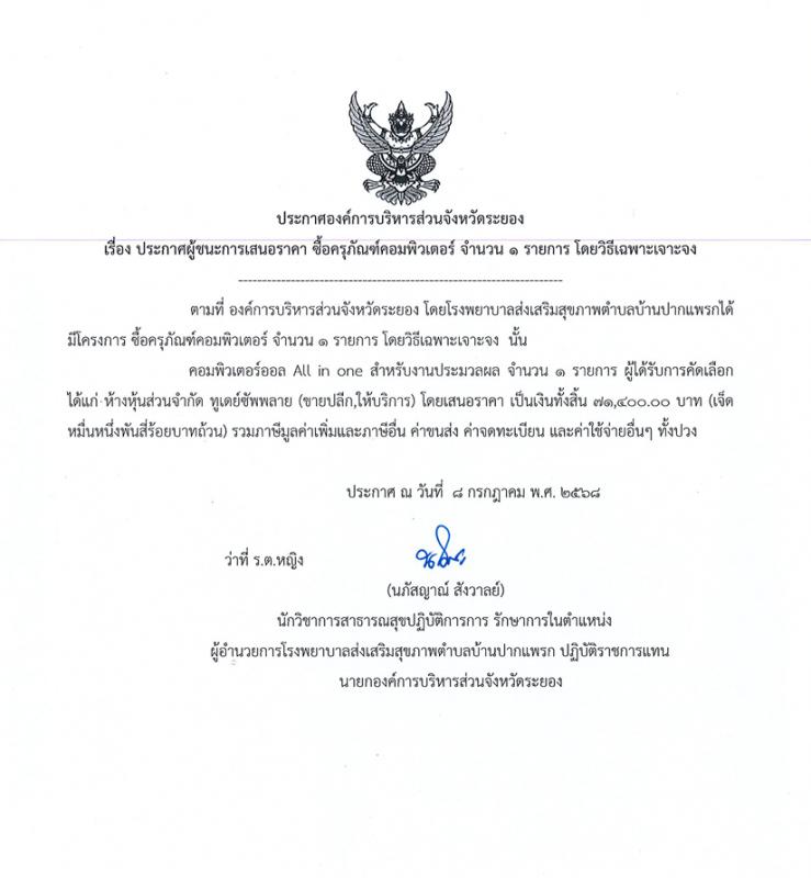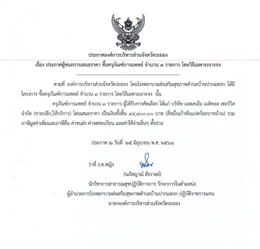 ประกาศผู้ชนะการเสนอราคา ซื้อครุภัณฑ์ทางการแพทย์ จำนวน 3 รายการ โดยวิธีเฉพาะเจาะจง