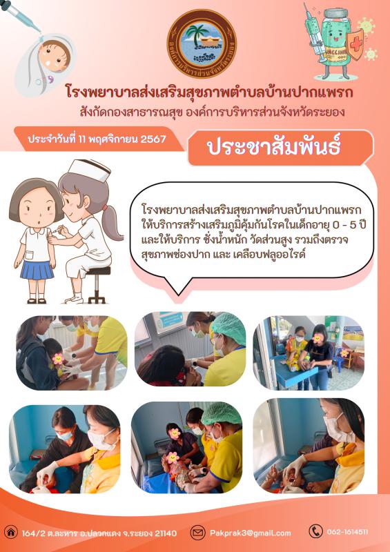 วันที่ 11 พ.ย. 2567 สร้างเสริมภูมิคุ้มกันโรคในเด็กอายุ 0-5 ปี