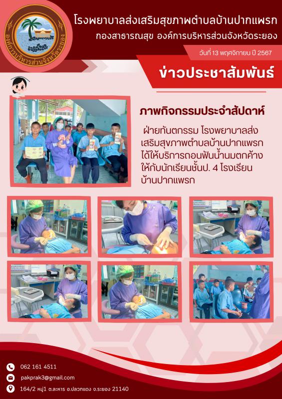 ประกาศ อบจ.ระยอง เรื่อง อัตราค่าบริการสาธารณสุขของ สอน.รพ.สต.ในสังกัด อบจ.ระยอง พ.ศ.2567