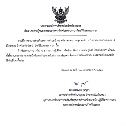 ประกาศผู้ชนะการเสนอราคา จัดจ้างซ่อมท่อประปา โดยวิธีเฉพาะเจาะจง