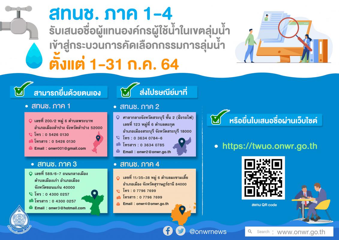 ประชาสัมพันธ์การเสนอชื่อผู้แทนองค์กรผู้ใช้น้ำเพื่อคัดเลือกเป็นกรรมการลุ่มน้ำผู้แทนองค์กรผู้ใช้น้ำ