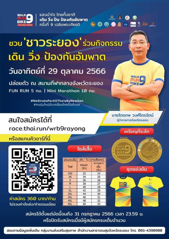 โครงการ "แสงนำใจ ไทยทั้งชาติ เดิน วิ่ง ปั่น ป้องกันอัมพาต" ครั้งที่ ๙ เฉลิมพระเกียรติ หัวข้อ "คนรุ่นใหม่ ขับเคลื่อนไทยไร้สโตรค" จังหวัดระยอง WALK RUN BIKE 9 (สนาม ระยอง)