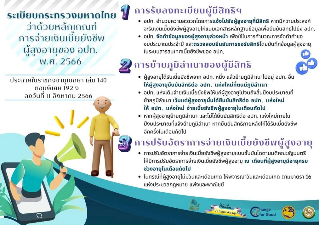 ระเบียบกระทรวงมหาดไทยว่าด้วยหลักเกณฑ์การจ่ายเงินเบี้ยยังชีพผู้สูงอายุขององค์กรปกครองส่วนท้องถิ่น พ.ศ.๒๕๖๖