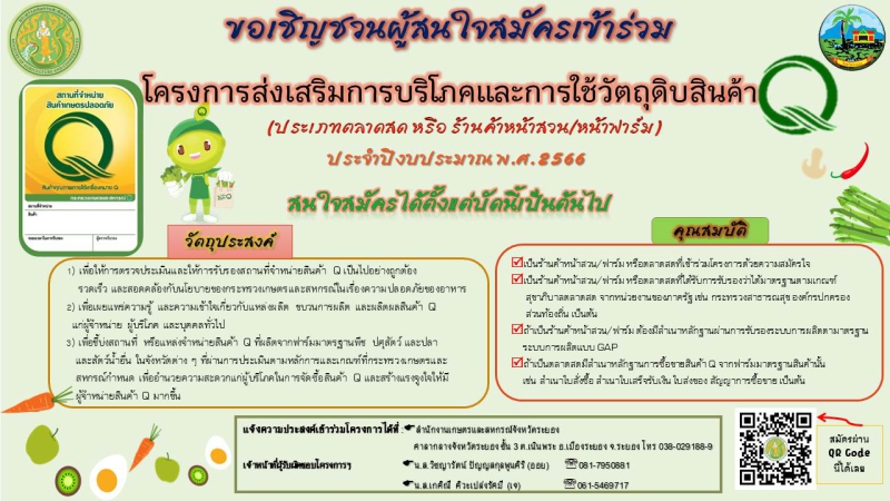 เชิญชวนผู้ประกอบการร้านอาหาร สมัครเข้าร่วม "โครงการร้านอาหารวัตถุดิบปลอดภัยเลือกใช้สินค้า Q" (Q RESTAURANT) ประจำปี ๒๕๖๖