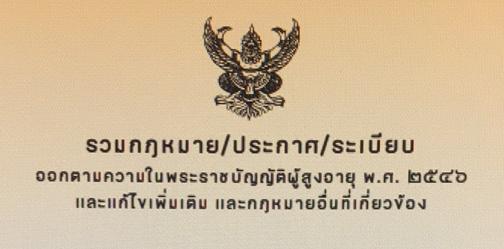 รวมกฎหมาย/ประกาศ/ระเบียบ ที่ออกตามความในพระราชบัญญัติผู้สูงอายุ พ.ศ. ๒๕๔๖ และแก้ไขเพิ่มเติม และกฏหมายอื่นที่เกี่ยวข้อง