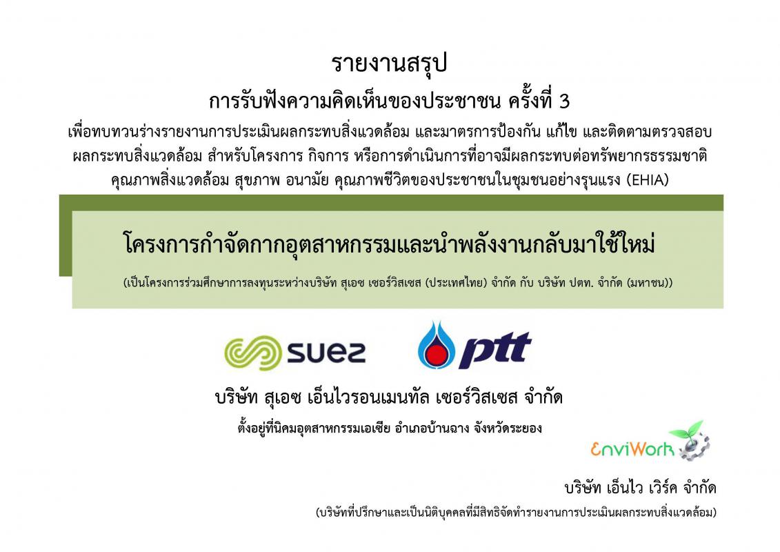 รายงานสรุปการรับฟังความคิดเห็นของประชาชนครั้งที่ ๓ (โครงการกำจัดกากอุตสาหกรรมและนำพลังงานกลับมาใช้ใหม่)