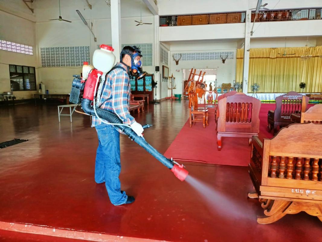 ฉีดพ่นน้ำยาฆ่าเชื้อโดยฝ่ายป้องกันและบรรเทาสาธารณภัย สำนักปลัดองค์การบริหารส่วนจังหวัด