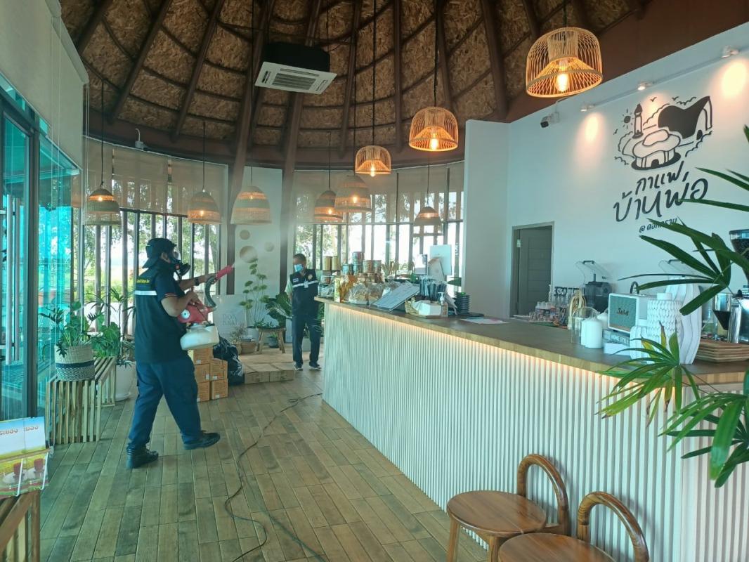 ฝ่ายป้องกันและบรรเทาสาธารณภัย อบจ.ระยอง ได้ออกทำการฉีดพ่นน้ำยาฆ่าเชื้อ