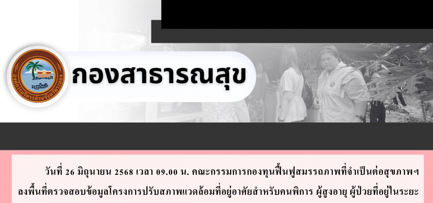 กองทุนฟื้นฟูสมรรถภาพที่จำเป็นต่อสุขภาพจังหวัดระยอง ลงพื้นที่ตรวจสอบข้อมูลโครงการปรับสภาพที่อยู่อาศัยสำหรับคนพิการและผู้สูงอายุฯ