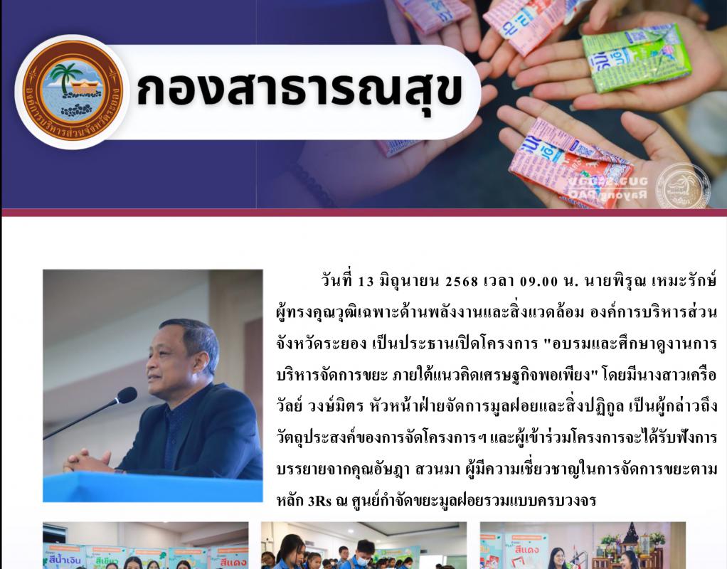อบจ.ระยอง จัดโครงการอบรมและศึกษาดูงานการบริหารจัดการขยะภายใต้แนวคิดเศรษฐกิจพอเพียง