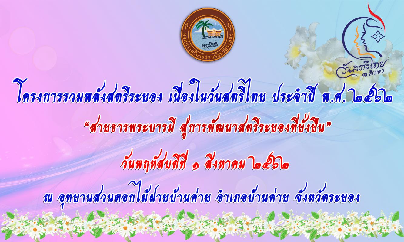ขอเชิญร่วมโครงการรวมพลังสตรีระยอง เนื่องในวันสตรีไทย ประจำปี 2562