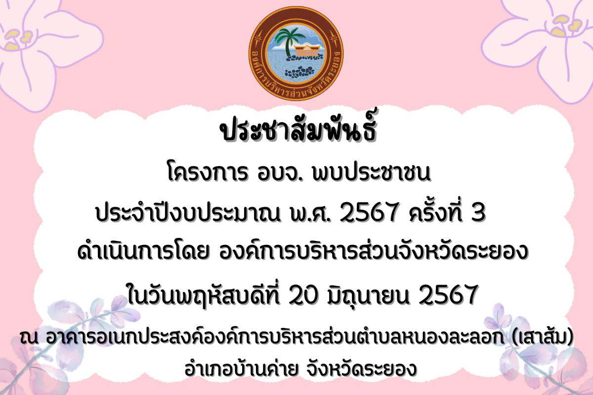 โครงการ อบจ.พบประชาชน ประจำปีงบประมาณ พ.ศ. 2567 ครั้งที่ 3