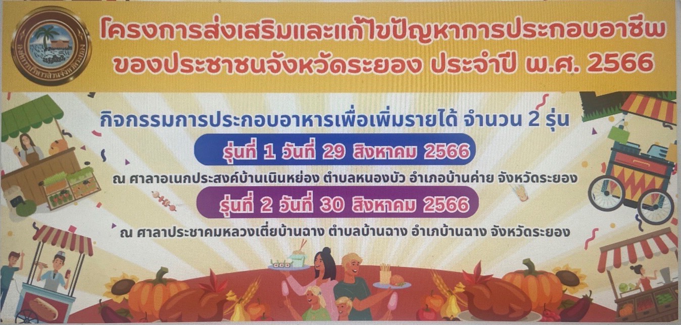 ขอเชิญเข้าร่วมโครงการส่งเสริมและแก้ไขปัญหาการประกอบอาชีพของประชาชนจ.ระยอง ประจำปี พ.ศ.2566 "กิจกรรมการประกอบอาหารเพื่อเพิ่มรายได้จำนวน 2 รุ่น"