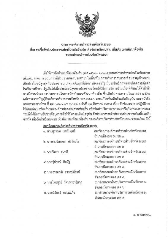 ประกาศองค์การบริหารส่วนจังหวัดระยอง เรื่องรายชื่อสัดส่วนประชาคมท้องถิ่นระดับจังหวัด เพื่อจัดทำหรือทบทวนเพิ่มเติม แผนพัฒนาท้องถิ่น ขององค์การบริหารส่วนจังหวัดระยอง