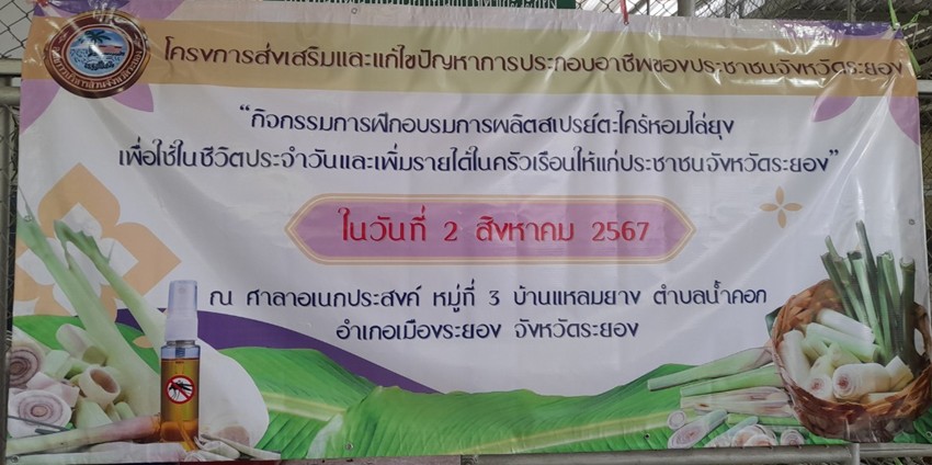 กิจกรรมการฝึกอบรมการผลิตสเปย์ตะไคร้หอมไล่ยุง เพื่อใช้ในชีวิตประจำวันและเพิ่มรายได้ในครัวเรือนให้แก่ประชาชนจังหวัดระยอง
