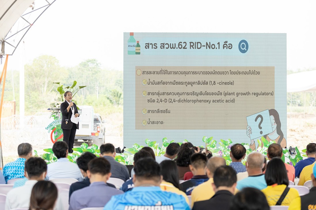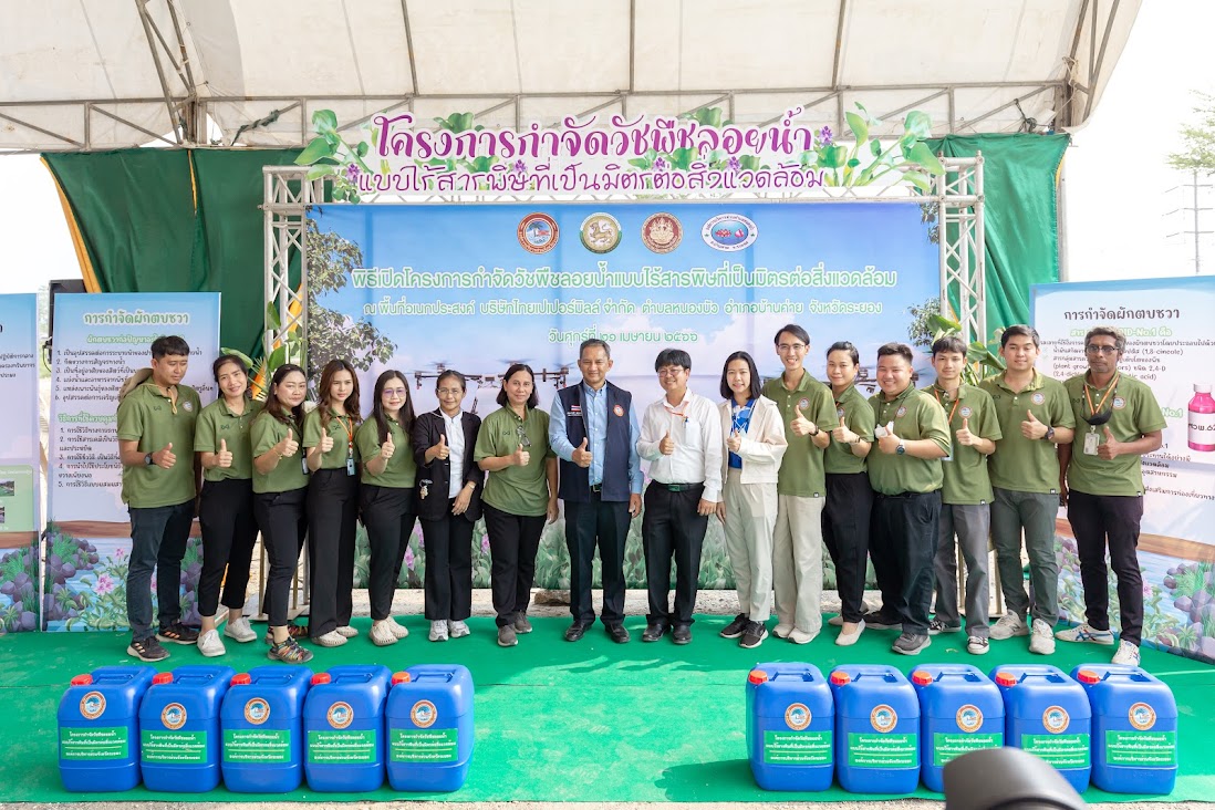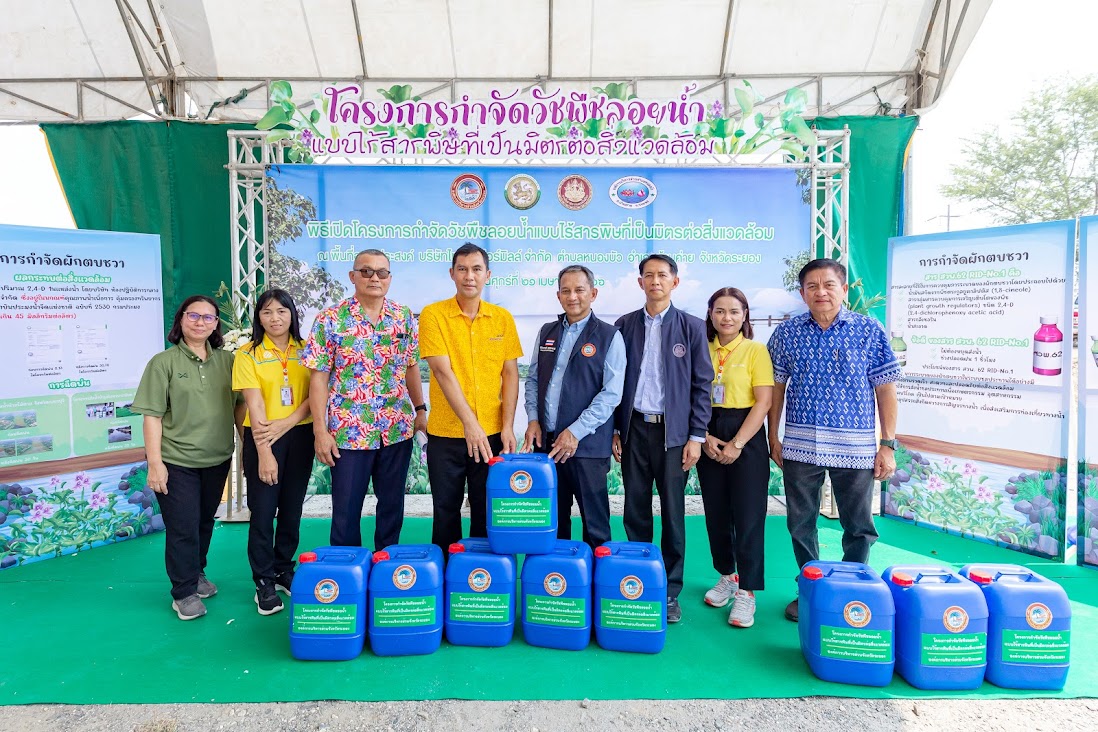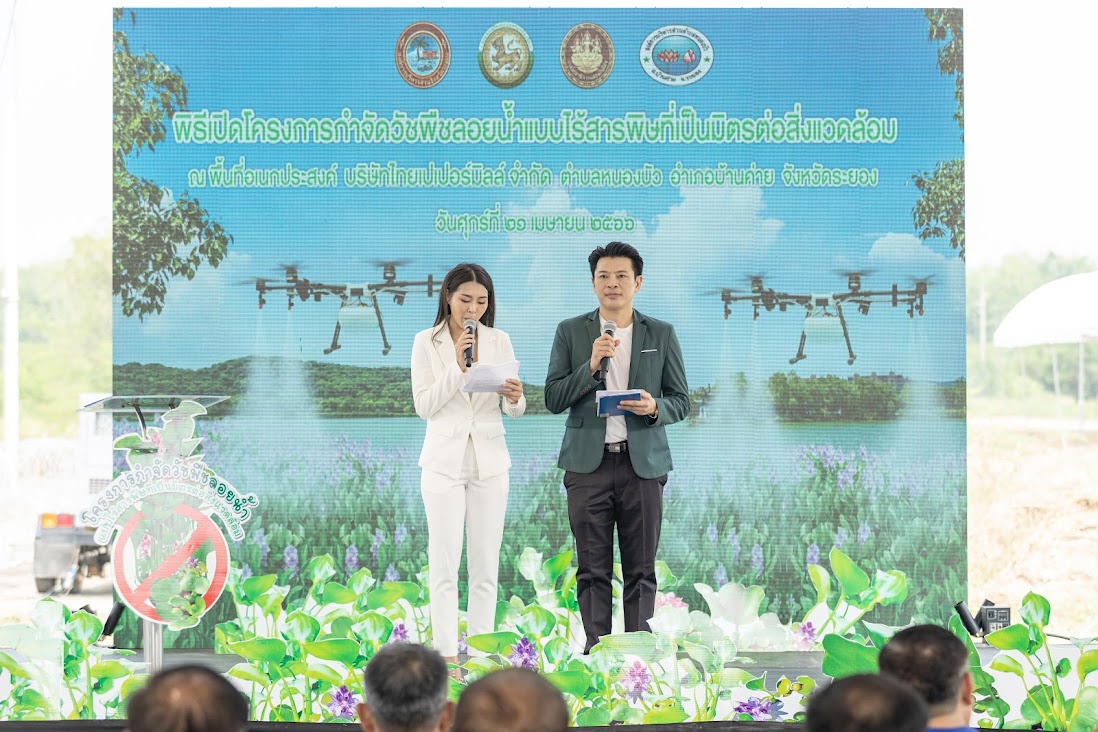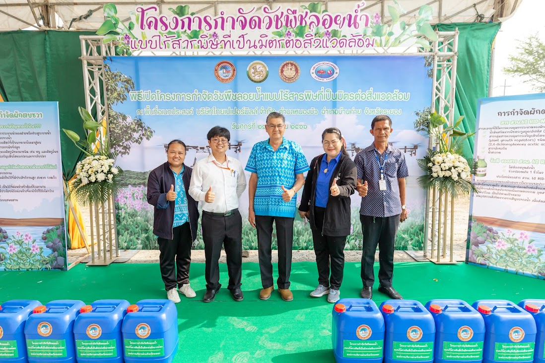 จังหวัดระยองโดยสำนักงานส่งเสริมการปกครองท้องถิ่นจังหวัดระยอง สำนักงานโยธาธิการและผังเมืองจังหวัดระยอง โครงการชลประทานระยอง และองค์การบริหารส่วนจังหวัดระยอง ร่วมมือกันจัดทำโครงการกำจัดวัชพืชลอยน้ำแบบไร้สารพิษที่เป็นมิตรต่อสิ่งแวดล้อม (zero floating weeds) โดยการอบรมให้ความรู้การใช้สารสูตรสวพ. 62-RID No.1 ที่คิดค้นโดยสำนักวิจัยและพัฒนา กรมชลประทาน ซึ่งสารดังกล่าวสามารถแก้ไขปัญหาการแพร่ระบาดของผักตบชวาได้อย่างมีประสิทธิภาพ ปราศจากกากตะกอนหลงเหลือ ไม่มีกลิ่น และปลอดภัยต่อสภาพแวดล้อม เพื่อเป็นการดูแลและฟื้นฟูแหล่งน้ำจืดในพื้นที่จังหวัดระยองให้มีความอุดมสมบูรณ์ อย่างยั่งยืน อันเป็นการบูรณาการความร่วมมือจากหน่วยงานรัฐ องค์กรปกครองส่วนท้องถิ่น และประชาชน ร่วมกันกำจัดวัชพืชลอยน้ำในแหล่งน้ำ ในพื้นที่จังหวัดระยอง ซึ่งจะช่วยปลูกฝังจิตสำนึกในการดูแลรักษาแหล่งน้ำจืด ให้แก่ประชาชน และสามารถฟื้นคืนความอุดมสมบูรณ์ของทรัพยากรน้ำต่อไป โดยได้มีการจัดทำโครงการ โดยการบรรยายความเป็นมาของสารละลาย สวพ.62-RID No.1 และสาธิตวิธีการพ่นสารละลาย สวพ.62-RID No.1 โดยอากาศยานไร้คนขับ ในวันที่ 21 เมษายน ณ พื้นที่ลานอเนกประสงค์ บริษัท ไทยเปเปอร์มิลล์ จำกัด ตำบลหนองบัว อำเภอบ้านค่าย จังหวัดระยองน 2566 เวลา 08.30 - 12.00