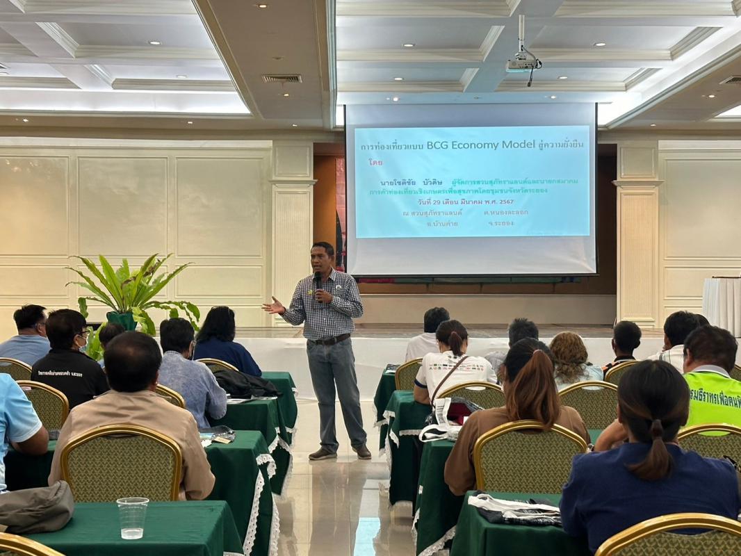 วันที่ 29 มีนาคม 2567 เวลา กองทรัพยากรธรรมชาติและสิ่งแวดล้อม องค์การบริหารส่วนจังหวัดระยอง ร่วมกับสมาพันธ์เกษตรกรรมยั่งยืนระยอง สมาคมการค้าท่องเที่ยวเชิงเกษตรเพื่อสุขภาพโดยชุมชนจังหวัดระยอง จัดทำโครงการอบรมเครือข่ายเกษตรอินทรีย์มุ่งสู่ BCG Economy Model โดยนางณิชาพร คุ้มท้วม ผู้อำนวยการกองทรัพยากรธรรมชาติและสิ่งแวดล้อม พร้อมด้วย นายสมบัติ มุมทอง หัวหน้าสำนักปลัดองค์การบริหารส่วนจังหวัด, นายศรวินภ์ ลูกปัด เลขาสมาพันธ์เกษตรกรรมยั่งยืนระยอง, นายโชติชัย บัวดิษ นายกสมาคมการค้าท่องเที่ยวเชิงเกษตรเพื่อสุขภาพโดยชุมชนจังหวัดระยอง ผู้แทนจากองค์กรภาครัฐ ภาคเอกชน เกษตรกร และผู้ที่เกี่ยวข้องเข้าร่วมพิธีเปิดโครงการฯอย่างพร้อมเพรียงกัน โดยมีนายทศพล บวรโมทย์ นายอำเภอบ้านค่าย เป็นประธานในพิธี โครงการดังกล่าวมีวัตถุประสงค์ เพื่อส่งเสริมให้เกษตรกรและประชาชนในจังหวัดระยอง รู้จักวิถีเกษตรกรอินทรีย์ มีวิธีการปลูกผักอินทรีย์ สมุนไพรอินทรีย์ และส่งเสริมให้เกษตรกรและประชาชนได้เรียนรู้วิธีการสร้างจุลินทรีย์สูตรต่างๆ ทดแทนปุยเคมี และสารขับไล่แมลงจากสมุนไพร รวมไปถึงยังเป็นการเพิ่มฐานความรู้ด้าน BCG Economy Model ให้กับเกษตรและประชาชนในจังหวัดระยองอีกด้วย ณ สวนสุภัทราแลนด์ ตำบลหนองละลอก อำเภอบ้านค่าย จังหวัดระยอง
