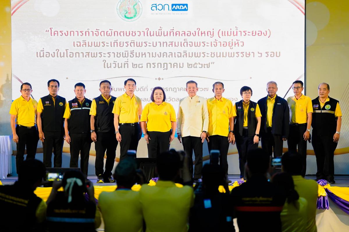 ซึ่งโครงการครั้งนี้จัดขึ้นเพื่อเฉลิมพระเกียรติ และถวายเป็นพระราชกุศลแด่พระบาทสมเด็จพระเจ้าอยู่หัว เนื่องในโอกาสพระราชพิธีมหามงคลเฉลิมพระชนมพรรษา 6 รอบ 28 กรกฎาคม 2567 เพื่อเป็นการพัฒนาฟื้นฟูแหล่ง น้ำด้วยการกำจัดผักตบชวาโดยใช้โดรนบินพ่นสารผสมที่มีประสิทธิภาพปลอดภัย และเป็นมิตรกับสิ่งแวดล้อม ร่วมกับการใช้ทุ่นยางพาราเพื่อควบคุมการแพร่กระจายของผักตบชวาเพิ่มประสิทธิภาพการระบายน้ำ ซึ่งเป็นนวัตกรรมที่ช่วยลดผลกระทบสิ่งแวดล้อมและใช้ประโยชน์จากยางพาราแปรรูป ช่วยทำให้คลองสะอาด เสริมสร้างทัศนียภาพสวยงาม และชีวิตที่ดีขึ้นของประชาชนในพื้นที่โดยรอบ สามารถแก้ไขปัญหาการแพร่ระบาดของผักตบชวาได้อย่างมีประสิทธิภาพ ปลอดภัยต่อสิ่งแวดล้อม เพื่อเป็นการดูแล และฟื้นฟูแหล่งน้ำจืดในพื้นที่จังหวัดระยองให้มีความอุดมสมบูรณ์อย่างยั่งยืนต่อไป