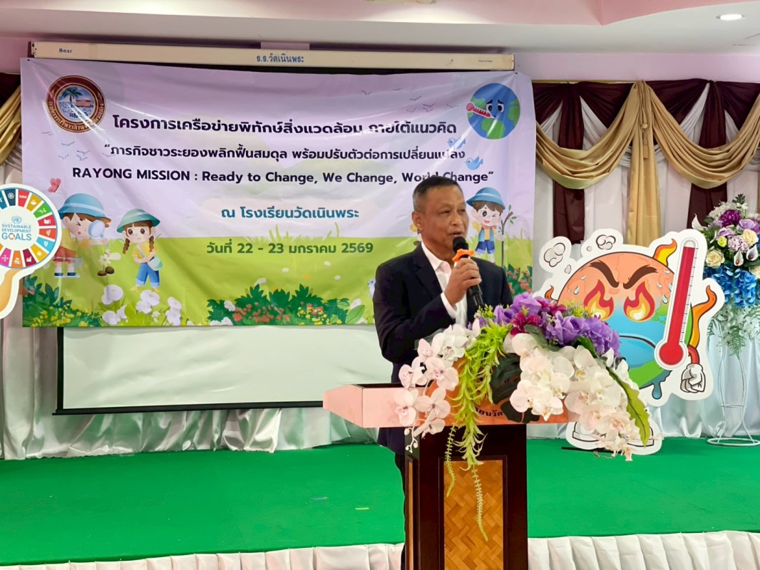 วันที่ 22 มกราคม 2569 เวลา 09.00 น. องค์การบริหารส่วนจังหวัดระยอง ร่วมกับสำนักงานทรัพยากรธรรมชาติและสิ่งแวดล้อมจังหวัดระยอง จึงได้จัดทำโครงการเครือข่ายพิทักษ์สิ่งแวดล้อม ภายใต้แนวคิด “ภารกิจชาวระยองพลิกฟื้นคืนสมดุล พร้อมปรับตัวต่อการเปลี่ยนแปลง RAYONG MISSION : Ready to Change, We Change, World Change” รุ่น 2 เพื่อสนับสนุนให้เยาวชนรู้เท่าทันสถานการณ์สิ่งแวดล้อมตามบริบทของพื้นที่ และสามารถจัดการปัญหาหรือความเสี่ยงด้านสิ่งแวดล้อมได้อย่างมีประสิทธิภาพ โดยการสร้างภาคีเครือข่ายพิทักษ์สิ่งแวดล้อม เพื่อเฝ้าระวังคุณภาพสิ่งแวดล้อม และเรียนรู้การปรับตัวด้านการเปลี่ยนแปลงสภาพภูมิอากาศ มุ่งเน้นการเพิ่มประสิทธิภาพการลดก๊าซเรือนกระจก โดยสนับสนุนส่งเสริมให้เยาวชนมีความรู้และส่วนร่วมในการจัดการสิ่งแวดล้อม รวมถึงการสร้างจิตสำนึกและความตระหนักให้กับเครือข่ายเยาวชนในการเฝ้าระวังรักษาสิ่งแวดล้อมในท้องถิ่นของตนเอง พร้อมทั้งเรียนรู้การปรับตัวด้านการเปลี่ยนแปลงสภาพภูมิอากาศ (Climate Change) พร้อมมุ่งสู่สังคม Carbon Neutrality และ Net Zero Emission ในอนาคต ในการนี้ ได้รับเกียรติจาก ว่าที่ร้อยตรีพิรุณ เหมะรักษ์ ผู้ทรงคุณวุฒิเฉพาะด้านพลังงานและสิ่งแวดล้อม เป็นประธานในพิธีเปิดโครงการ พร้อมด้วย นางณิชาพร คุ้มท้วม ผู้อำนวยการกองทรัพยากรธรรมชาติและสิ่งแวดล้อม คณะครู นักเรียน และผู้เกี่ยวข้องเข้าร่วมโครงการ ณ โรงเรียนวัดเนินพระ ตำบลเนินพระ อำเภอเมืองระยอง จังหวัดระยอง