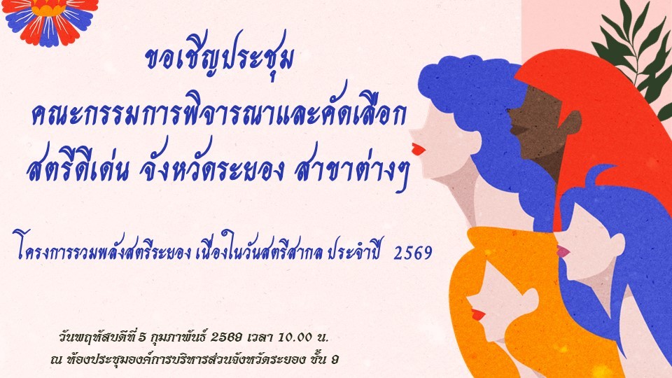 ขอเชิญประชุมคณะกรรมการพิจารณาและคัดเลือกสตรีดีเด่นจังหวัดระยอง