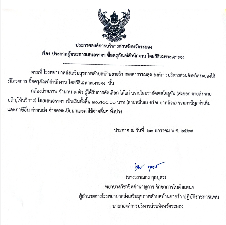 โรงพยาบาลส่งเสริมสุขภาพตำบลบ้านยายร้า > ข่าวประชาสัมพันธ์ ประกาศผู้ชนะการเสนอราคา ซื้อครุภัณฑ์สำนักงาน โดยวิธีเฉพาะเจาะจง