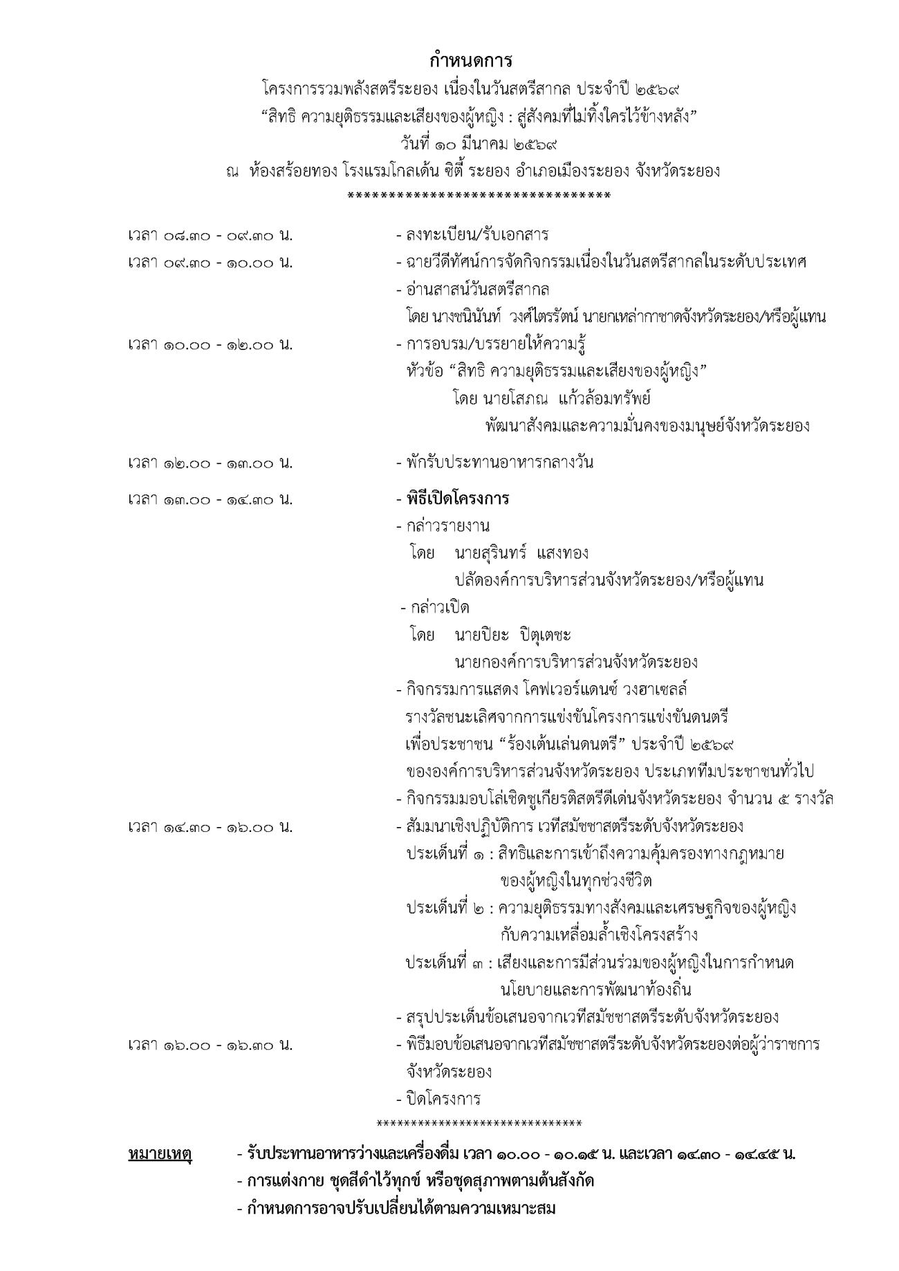 จะดำเนินการจัดทำโครงการรวมพลังสตรีระยอง เนื่องในวันสตรีสากล ประจำปี 2569
