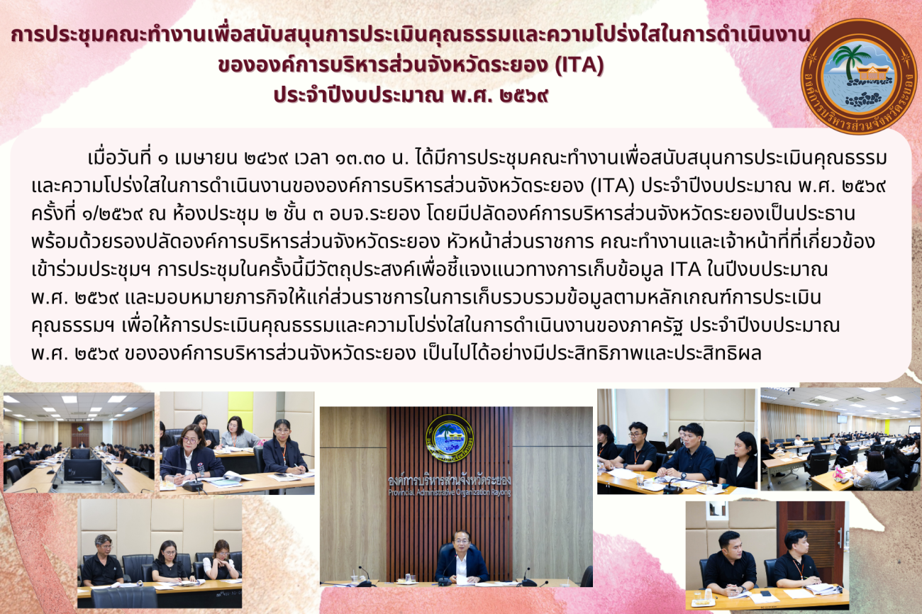 การประชุมคณะทำงานเพื่อสนับสนุนการประเมินคุณธรรมและความโปร่งใสในการดำเนินงานขององค์การบริหารส่วนจังหวัดระยอง (ITA) ประจำปีงบประมาณ พ.ศ. 2569 ครั้งที่1/2569