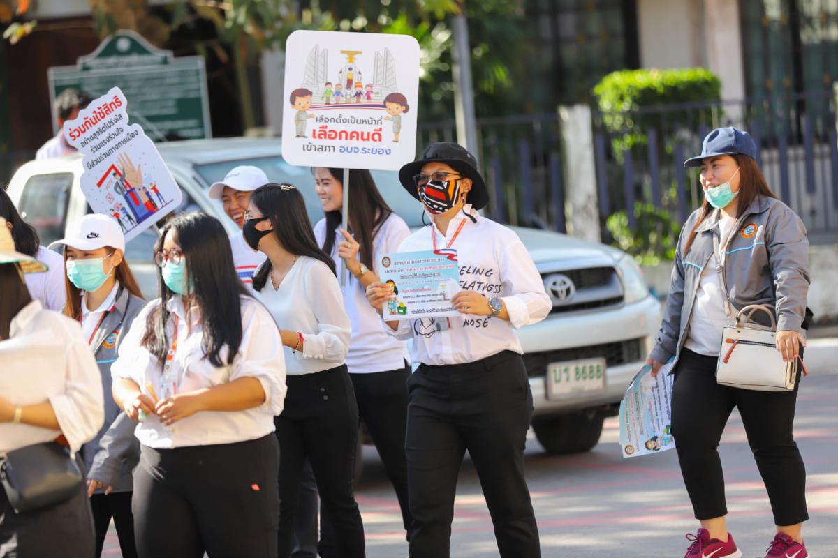 สำนักปลัดองค์การบริหารส่วนจังหวัดระยองเดินรณรงค์ประชาสัมพันธ์การเลือกตั้งท้องถิ่นอำเภอแกลง