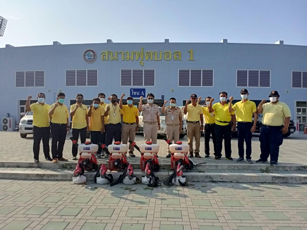 วันที่ 25 มกราคม 2564 นายสมศักดิ์ เกตุสาคร รองปลัดอบจ.ระยอง (2) พร้อมด้วย นายเศรษฐา บุตรหนู ผู้อำนวยการกองทรัพยากรธรรมชาติและสิ่งแวดล้อม ร่วมให้โอวาทและให้กำลังใจทีมฉีดพ่นน้ำยาฆ่าเชื้อไวรัส Covid-19 ของอบจ.ระยอง ณ สนามกีฬากลางจังหวัดระยอง