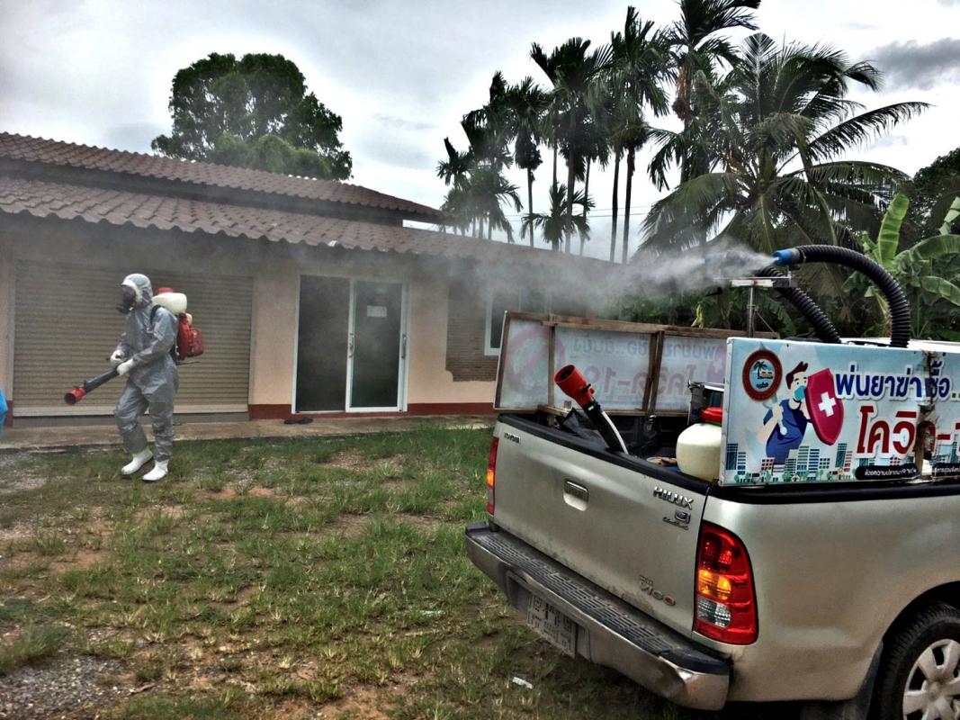 ฝ่ายป้องกันและบรรเทาสาธารณภัย อบจ.ระยอง เร่งออกพ่นน้ำยาฆ่าเชื้อภายในจังหวัด