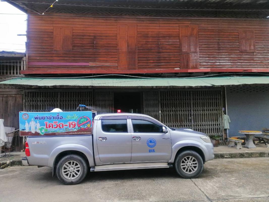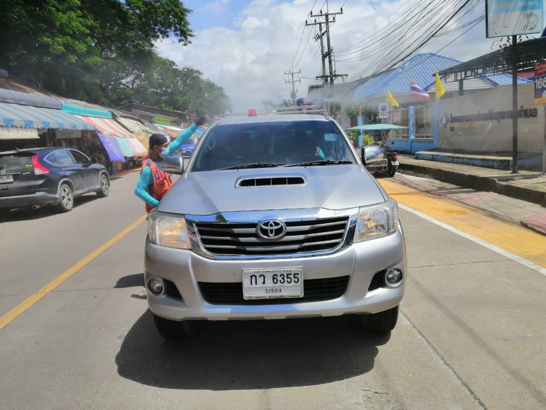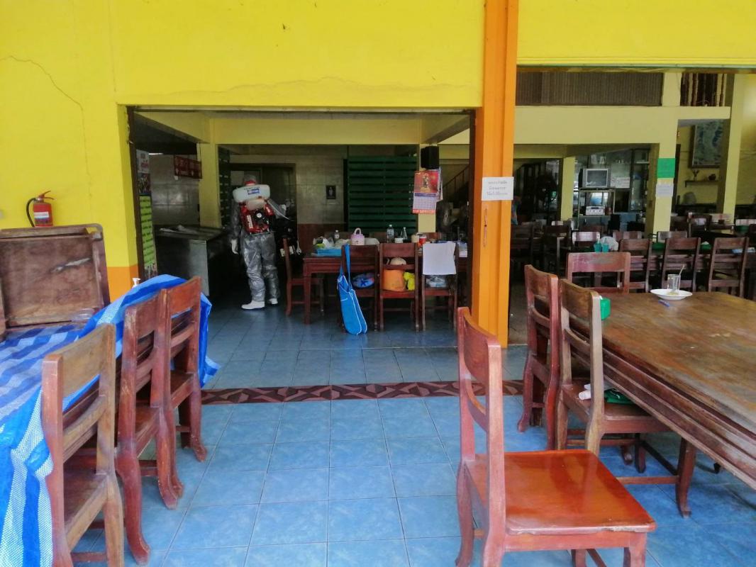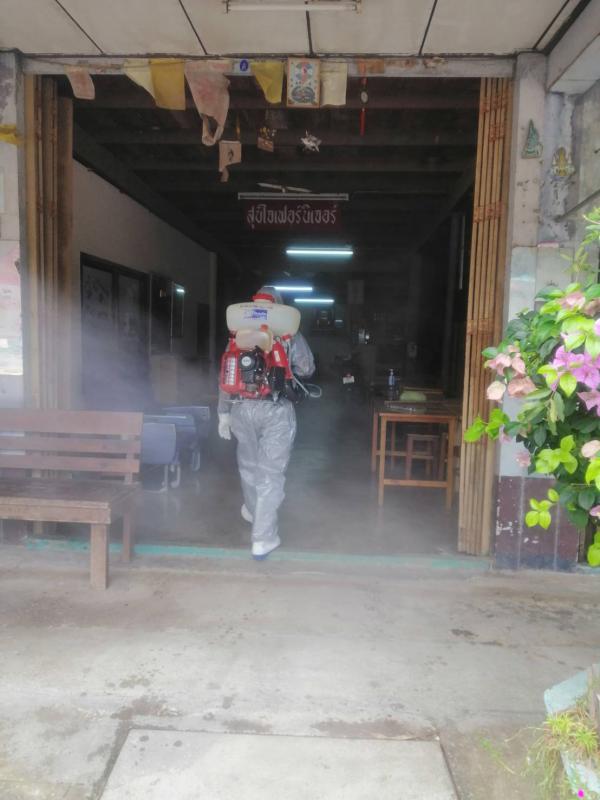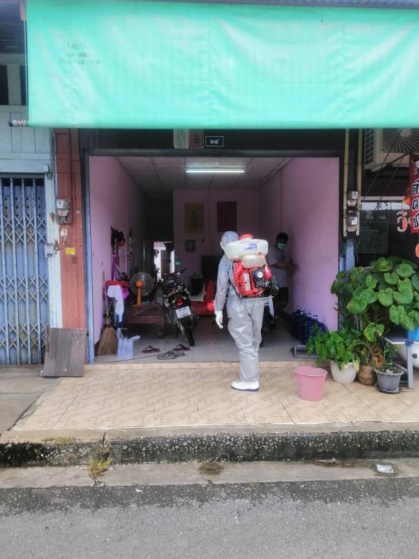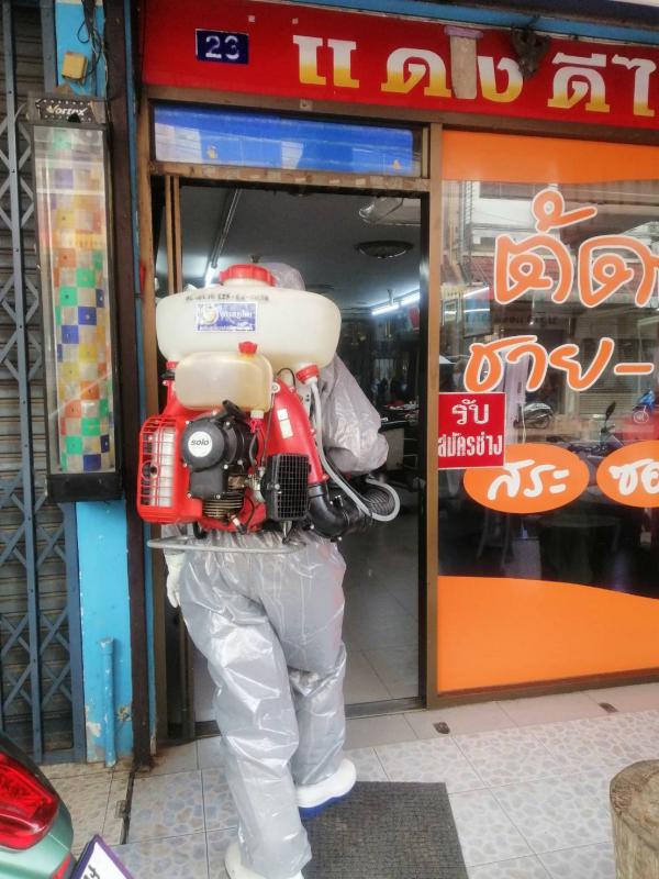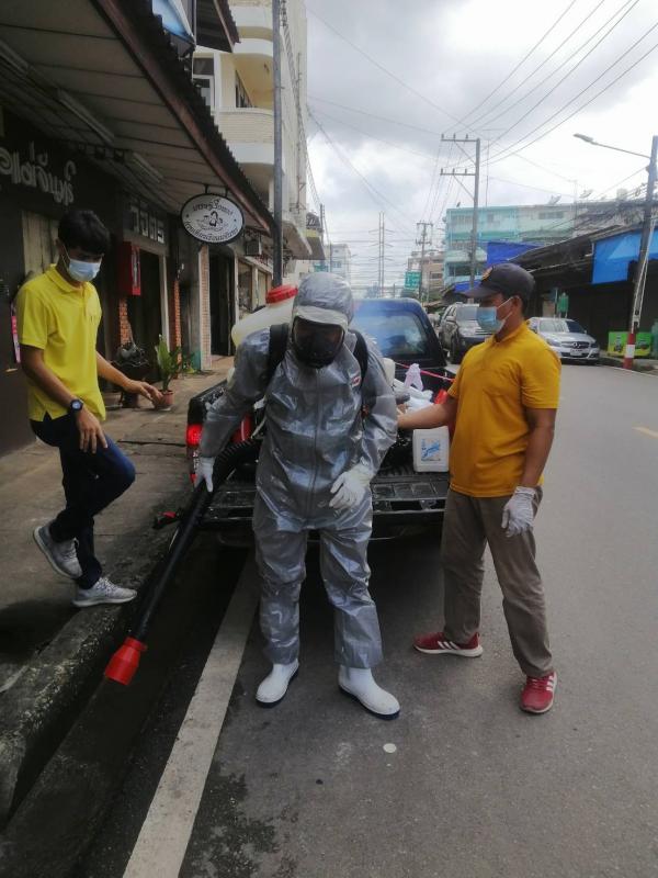 ฉีดพ่นน้ำยาฆ่าเชื้อ โควิด-19 โดยฝ่ายป้องกันและบรรเทาสาธารณภัย อบจ.ระยอง บริเวณตลาดบ้านเพ​และเขต​อ.แกลง​