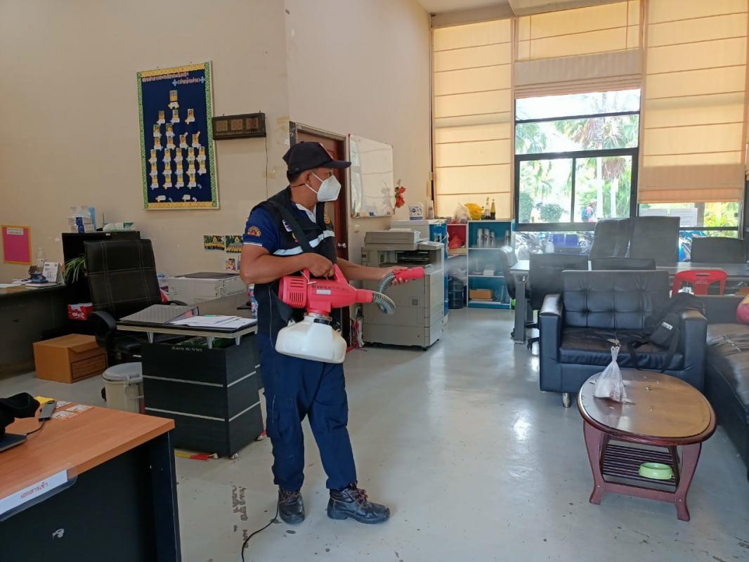 ฝ่ายป้องกันและบรรเทาสาธารณภัย อบจ.ระยอง ได้ออกทำการฉีดพ่นน้ำยาฆ่าเชื้อ