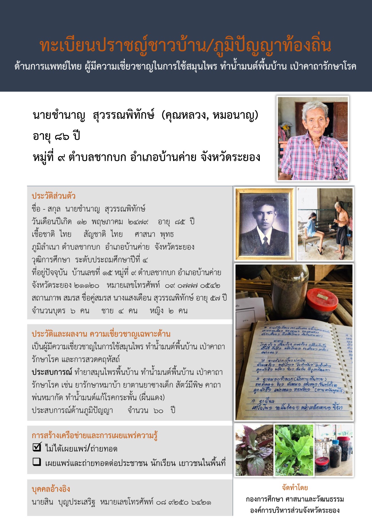 ทะเบียนปราชญ์ชาวบ้าน/ภูมิปัญญาท้องถิ่น พ.ศ. 2564