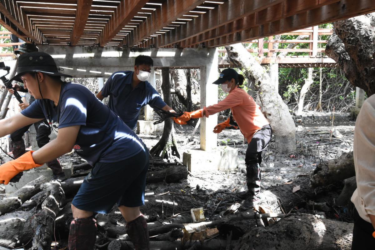 โครงการอนุรักษ์พันธุ์สัตว์น้ำในระบบนิเวศป่าชายเลน โดยได้ดำเนินการจัดกิจกรรม สร้างคอนโดปู จำนวน 2 ชุด ปล่อยพันธุ์ปลากะพงขาว จำนวน 1,000 ตัว ปล่อยพันธุ์ปูแสม จำนวน 200 ตัว มีจำนวนผู้เข้าร่วมโครงการทั้งสิ้น 50 คน ดังนี้ อาสาสมัครท้องถิ่นรักษ์โลก จำนวน 11 คน กลุ่มอนุรักษ์ฟื้นฟูแม่น้ำระยองและป่าชายเลน จำนวน 5 คน เจ้าหน้าที่สำนักงานทรัพยากรทางทะเลและชายฝั่งที่ 1 จำนวน 14 คน และเจ้าหน้าที่องค์การบริหารส่วนจังหวัดระยอง จำนวน 20 คน เมื่อวันที่ 30 มิถุนายน 2565 เวลา 09.00 น. ณ บริเวณป่าชายเลนพระเจดีย์กลางน้ำ อำเภอเมืองระยอง จังหวัดระยอง