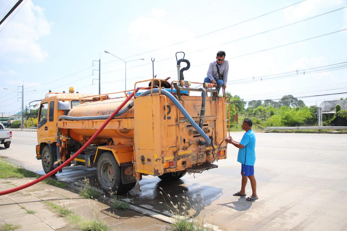 อบจ.ระยองสนับสนุนรถบรรทุกน้ำ เพื่อช่วยเหลือประชาชนในพื้นที่ที่ขาดแคลนน้ำ บริเวณหมู่ที่ 12 ตำบลบางบุตร