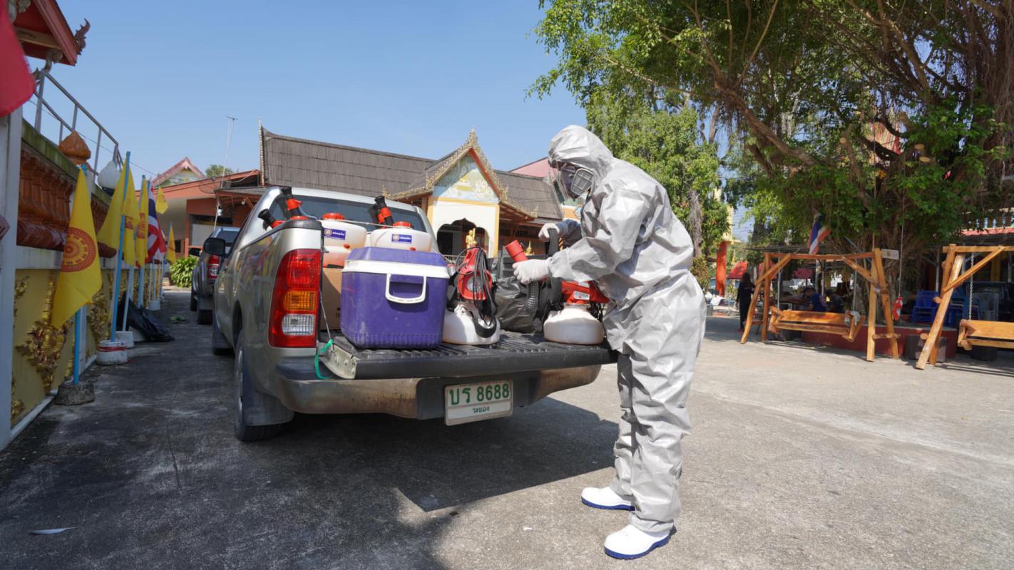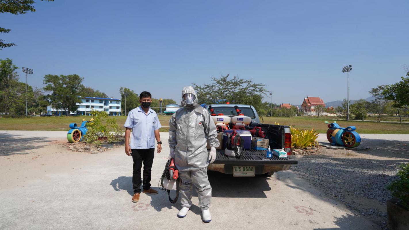 ฉีดพ่นน้ำยาฆ่าเชื้อไวรัส Covid-19 ณ 1. วัดห้วงหิน ต.ชากบก อ.บ้านค่าย 2.โรงเรียนวัดห้วงหิน ต.ชากบก อ.บ้านค่าย 3.ศูนย์พัฒนาเด็กเล็กบ้านห้วงหิน ต.ชากบก อ.บ้านค่าย 4.วัดตาขัน ต.ตาขัน อ.บ้านค่าย 5. ตึกองค์การบริหารส่วนจังหวัดระยอง