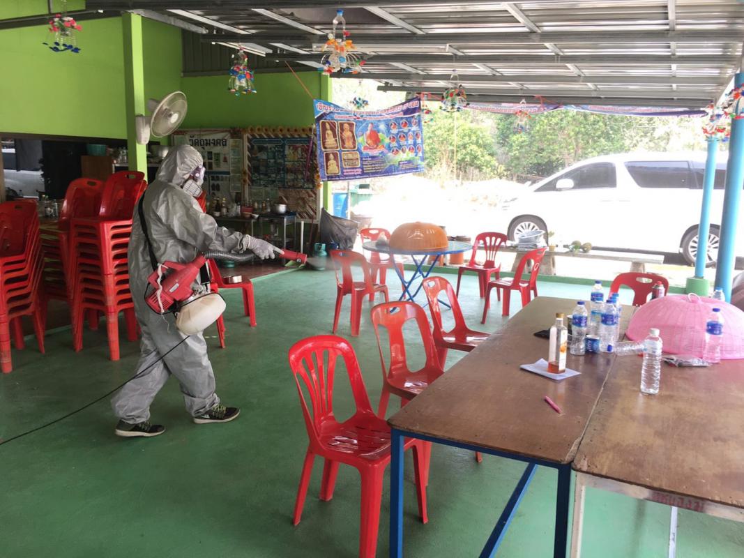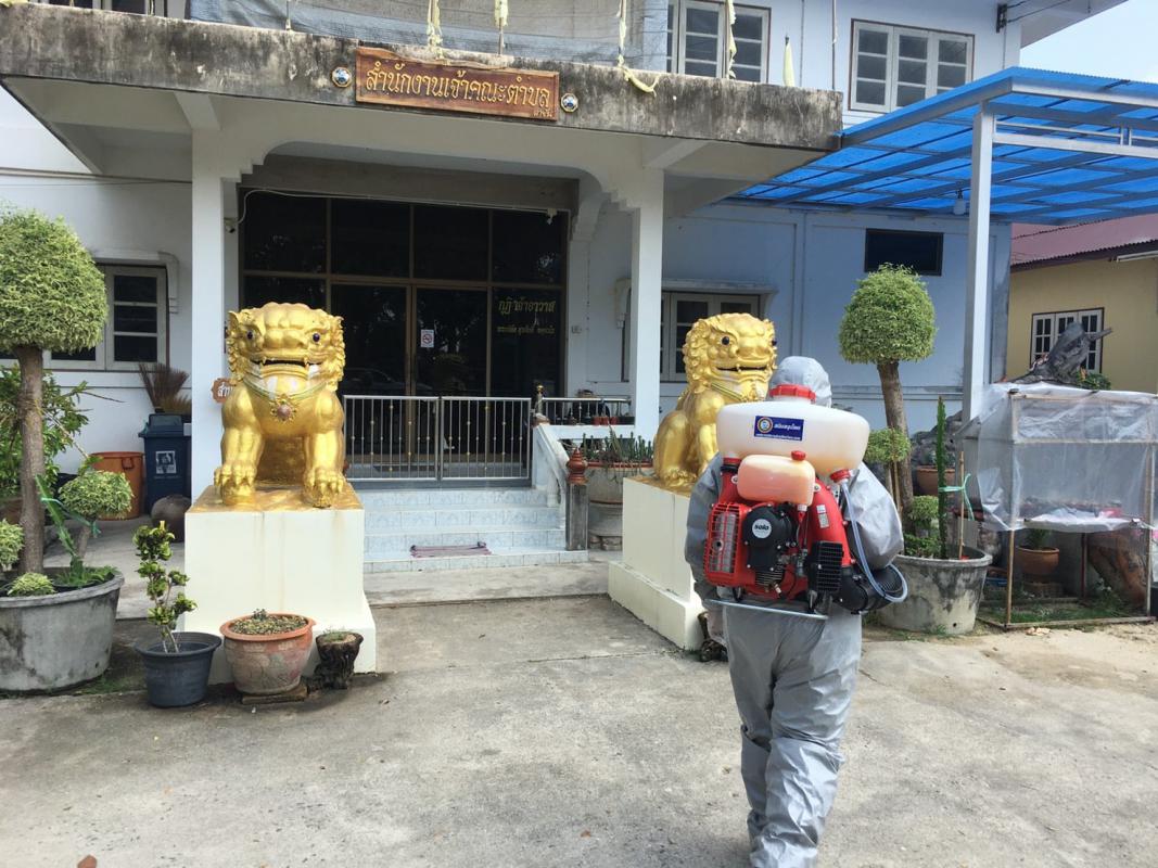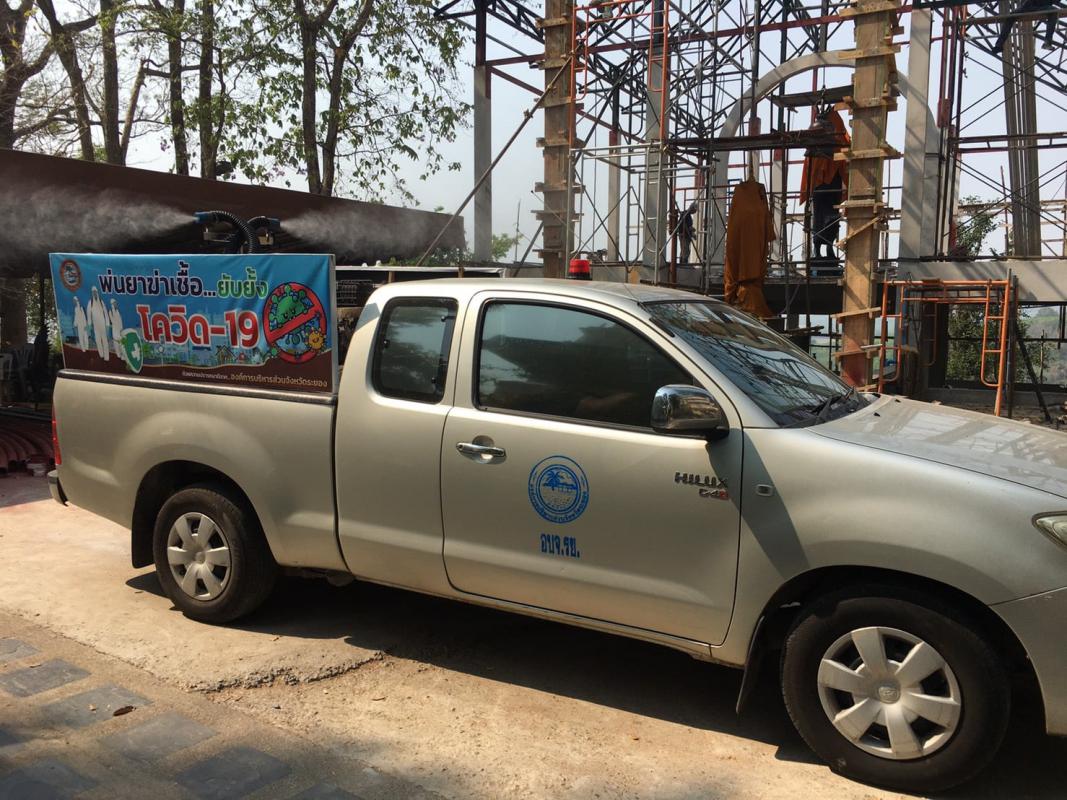 องค์การบริหารส่วนจังหวัดระยองทำการฉีดพ่นน้ำยาฆ่าเชื้อไวรัส Covid-19