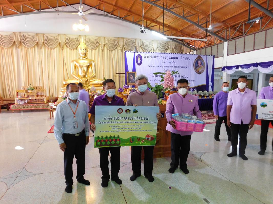 วันที่ 30 มีนาคม 2564 องค์การบริหารส่วนจังหวัดระยอง โดยนายอรุณ วิชกิจ ผู้เชี่ยวชาญด้านการวางแผนและวิเคราะห์นโยบาย พร้อมด้วยนายสมบัติ มุมทอง หัวหน้าสำนักปลัดองค์การบริหารส่วนจังหวัด ได้มอบเมล็ดพันธุ์ผักสวนครัว จำนวน 1,840 ซอง แก่สำนักงานพัฒนาชุมชนจังหวัดระยอง ในการต่อยอดโครงการปลูกผักสวนครัว เพื่อสร้างความมั่นคงทางอาหารให้มีความยั่งยืน ตามการน้อมนำแนวพระราชดำริของสมเด็จพระกนิษฐาธิราชเจ้า กรมสมเด็จพระเทพรัตนราชสุดาฯ สยามบรมราชกุมารี สร้างความมั่นคงทางอาหารสู่ปฏิบัติการ 90 วัน ปลูกพืชผักสวนครัวเพื่อสร้างความมั่นคงทางอาหาร รอบ 2 เพื่อนำไปแจกจ่ายให้กับครัวเรือนยากจน/ด้อยโอกาส และผู้ได้รับผลกระทบจากการแพร่ระบาดของโรคติดเชื้อไวรัสโคโรนา 2019 (COVID – 19) ให้มีความมั่นคงทางอาหาร ด้วยการปลูกพืชผักไว้รับประทานในครัวเรือน ณ วัดเนินพระ ตำบลเนินพระ อำเภอเมืองระยอง จังหวัดระยอง