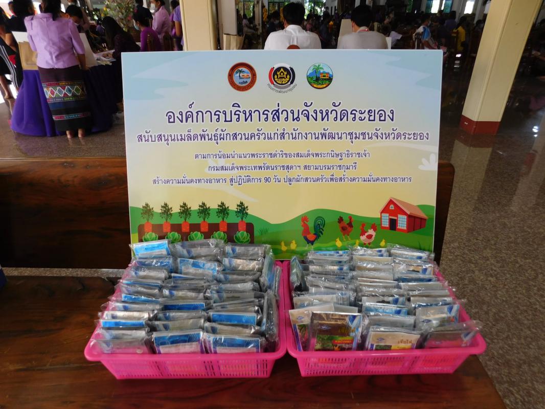 องค์การบริหารส่วนจังหวัดระยองมอบเมล็ดพันธุ์ผักสวนครัว จำนวน 1,840 ซอง แก่สำนักงานพัฒนาชุมชนจังหวัดระยอง