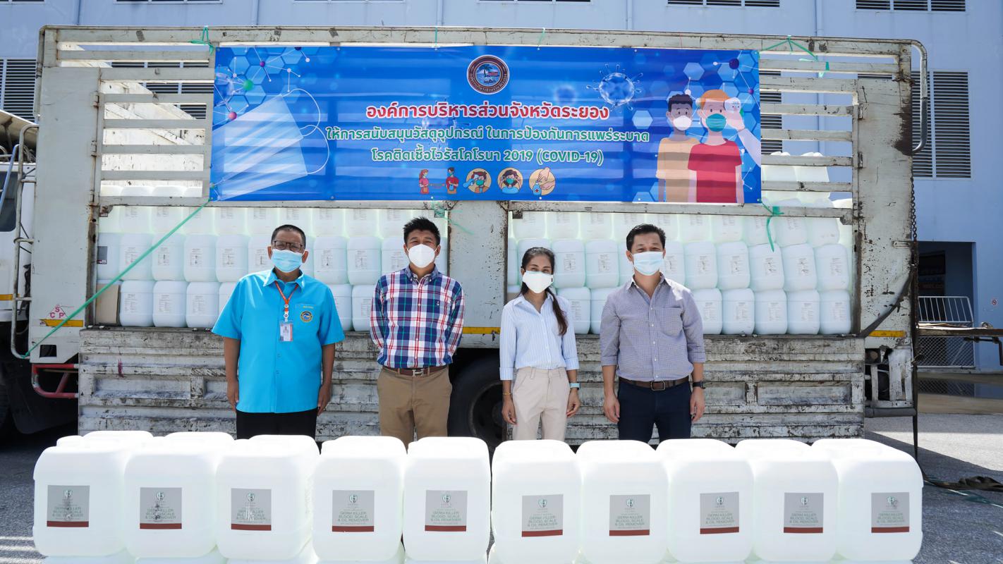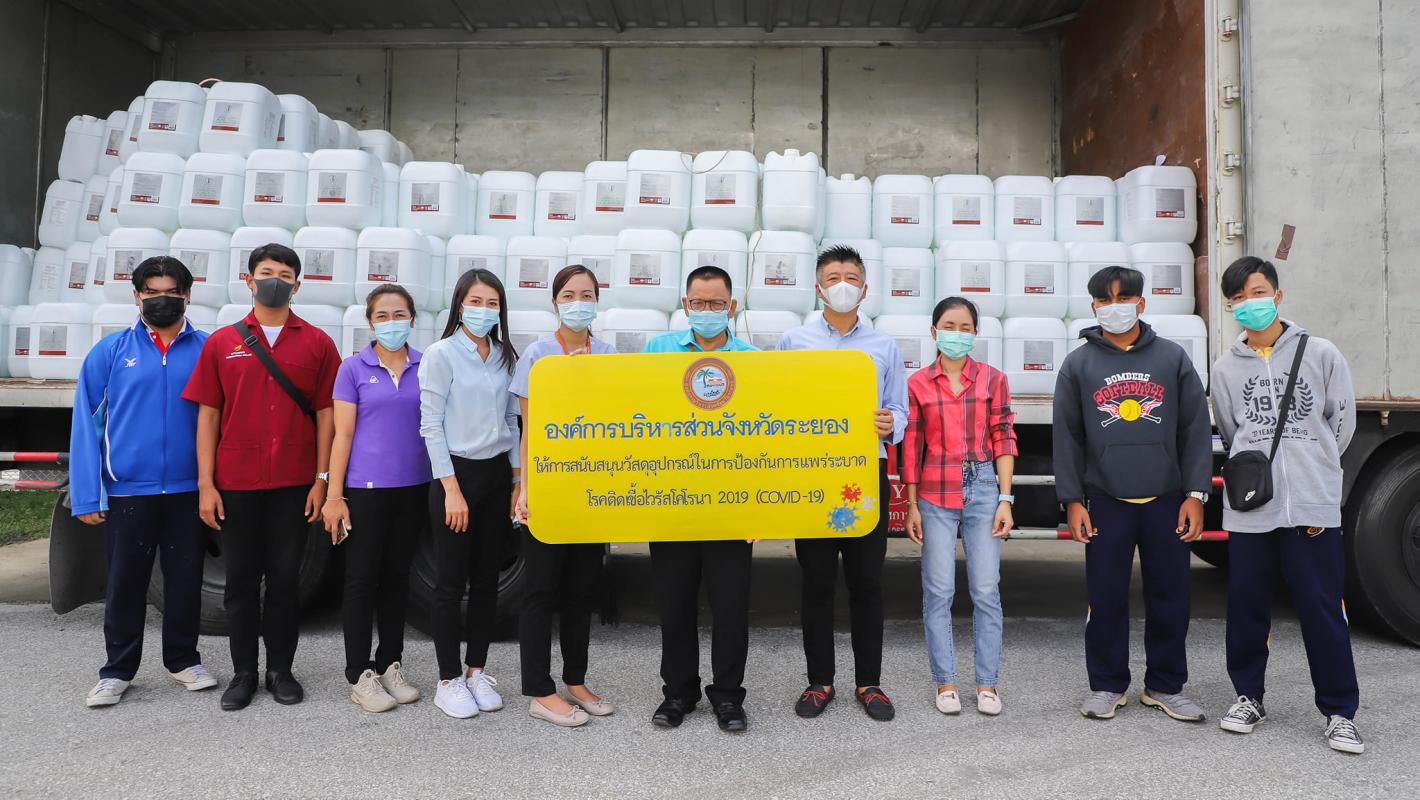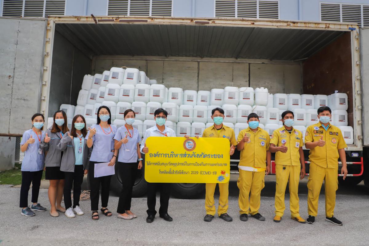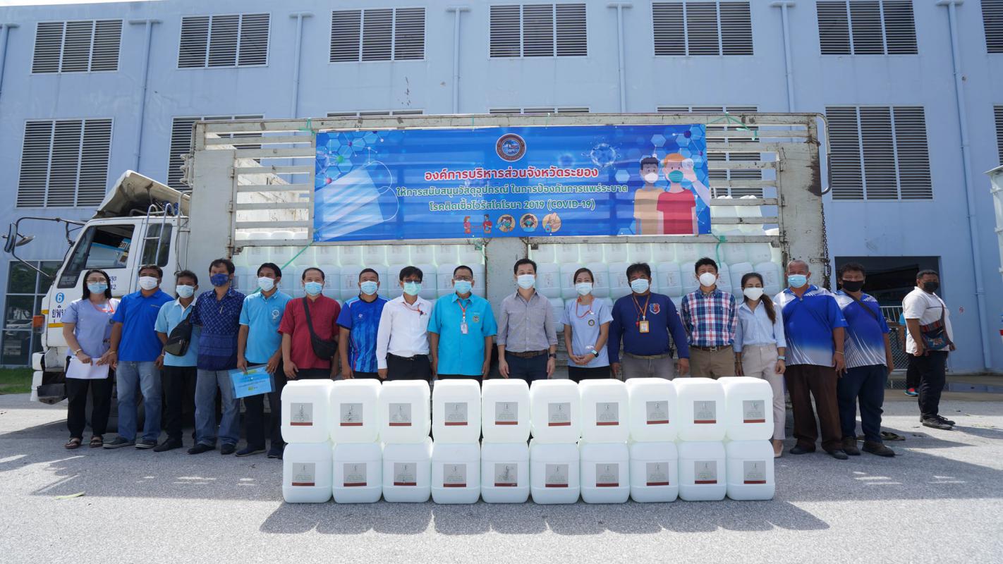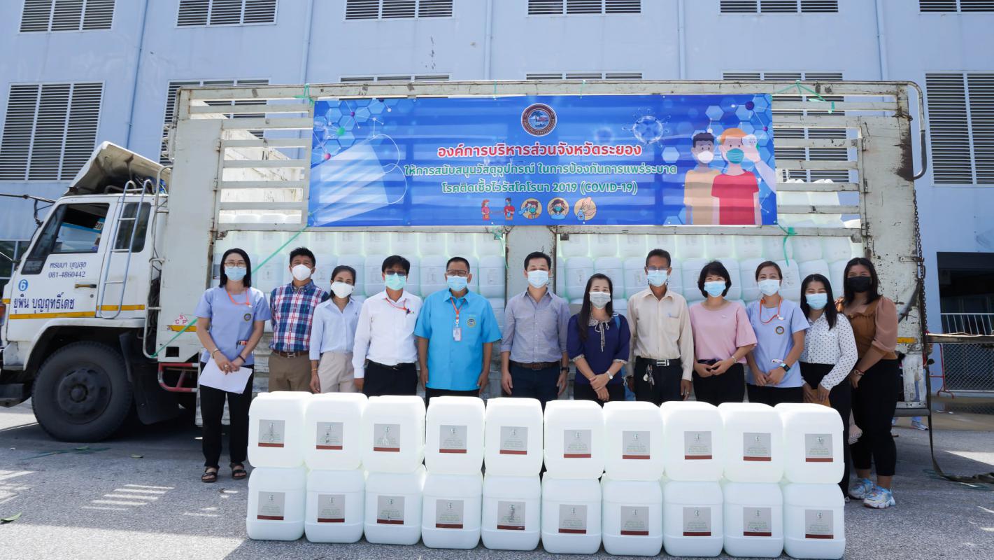 อบจ.ระยอง สนับสนุนน้ำยาฆ่าเชื้อและเจลแอลกอฮอล์