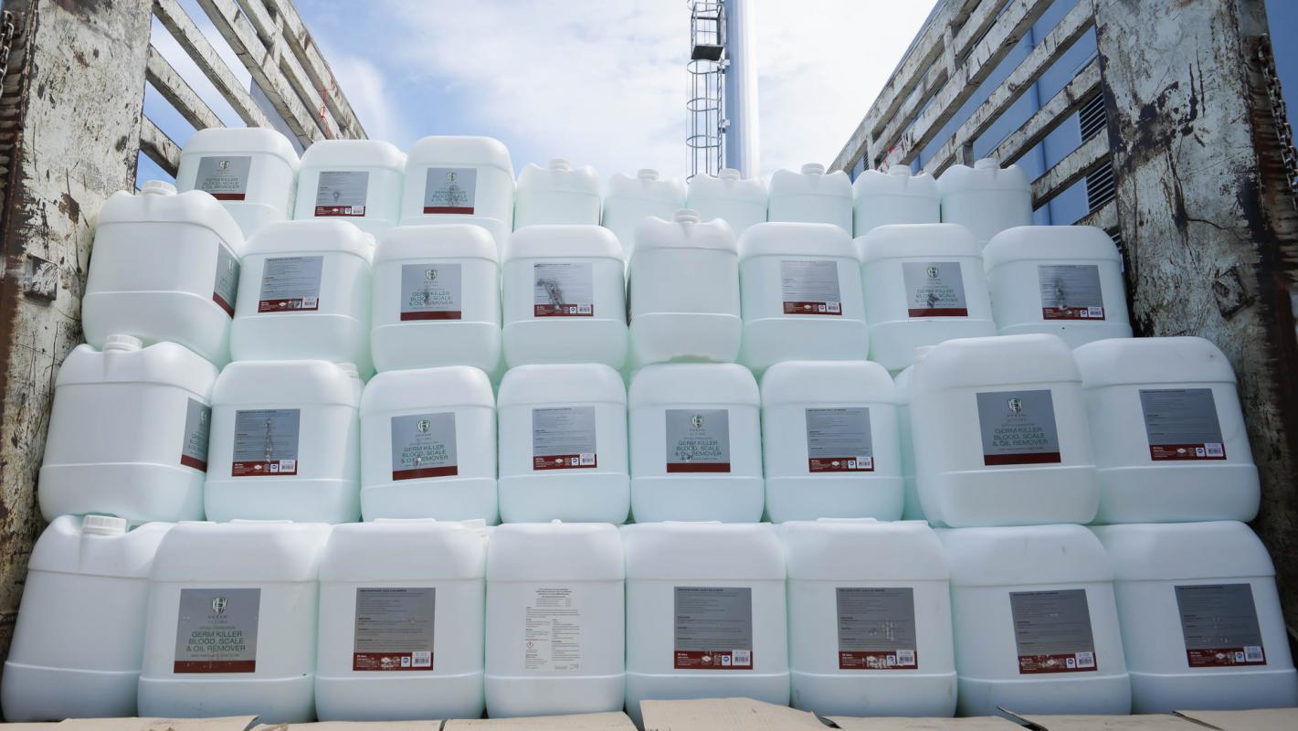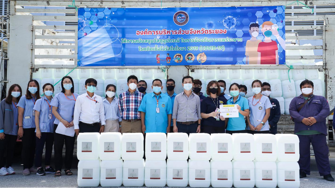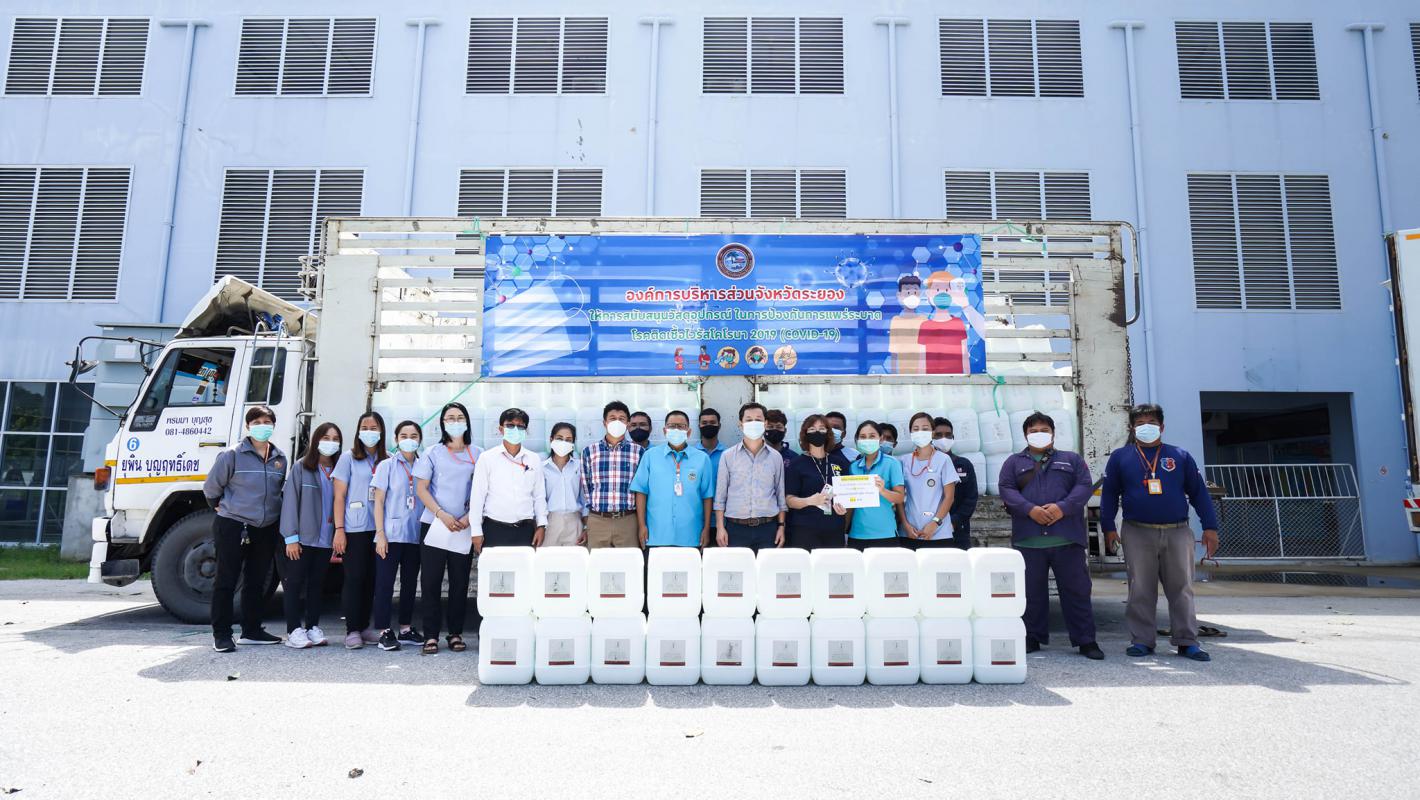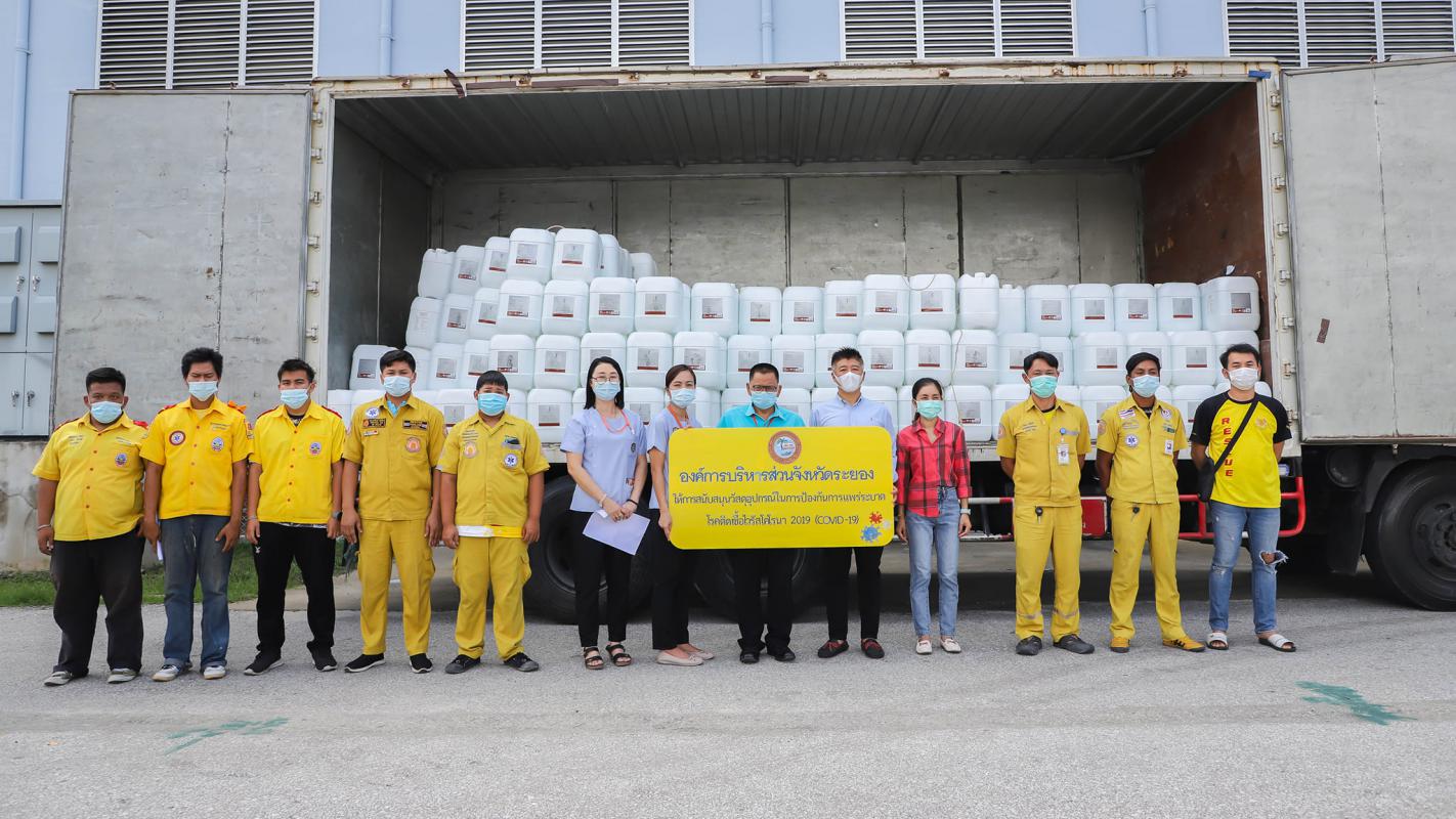 อบจ.ระยอง สนับสนุนน้ำยาฆ่าเชื้อและเจลแอลกอฮอล์