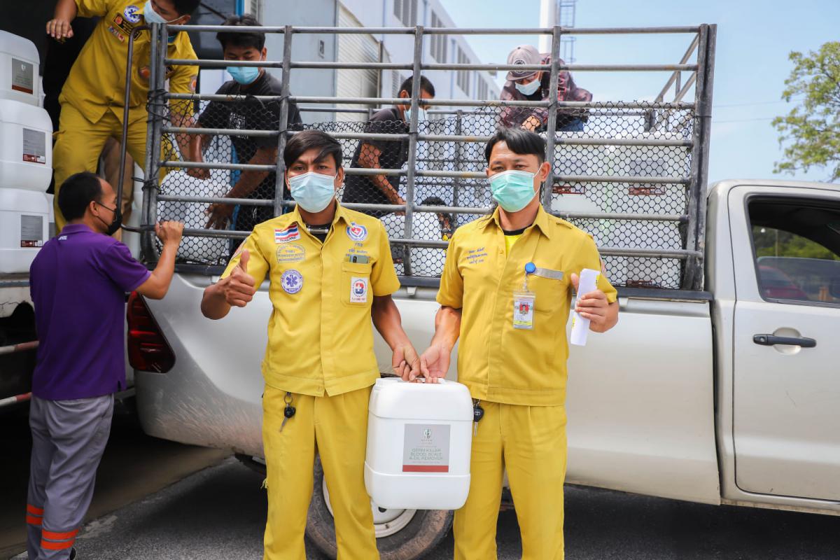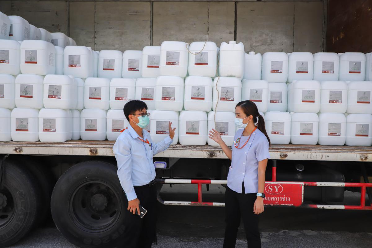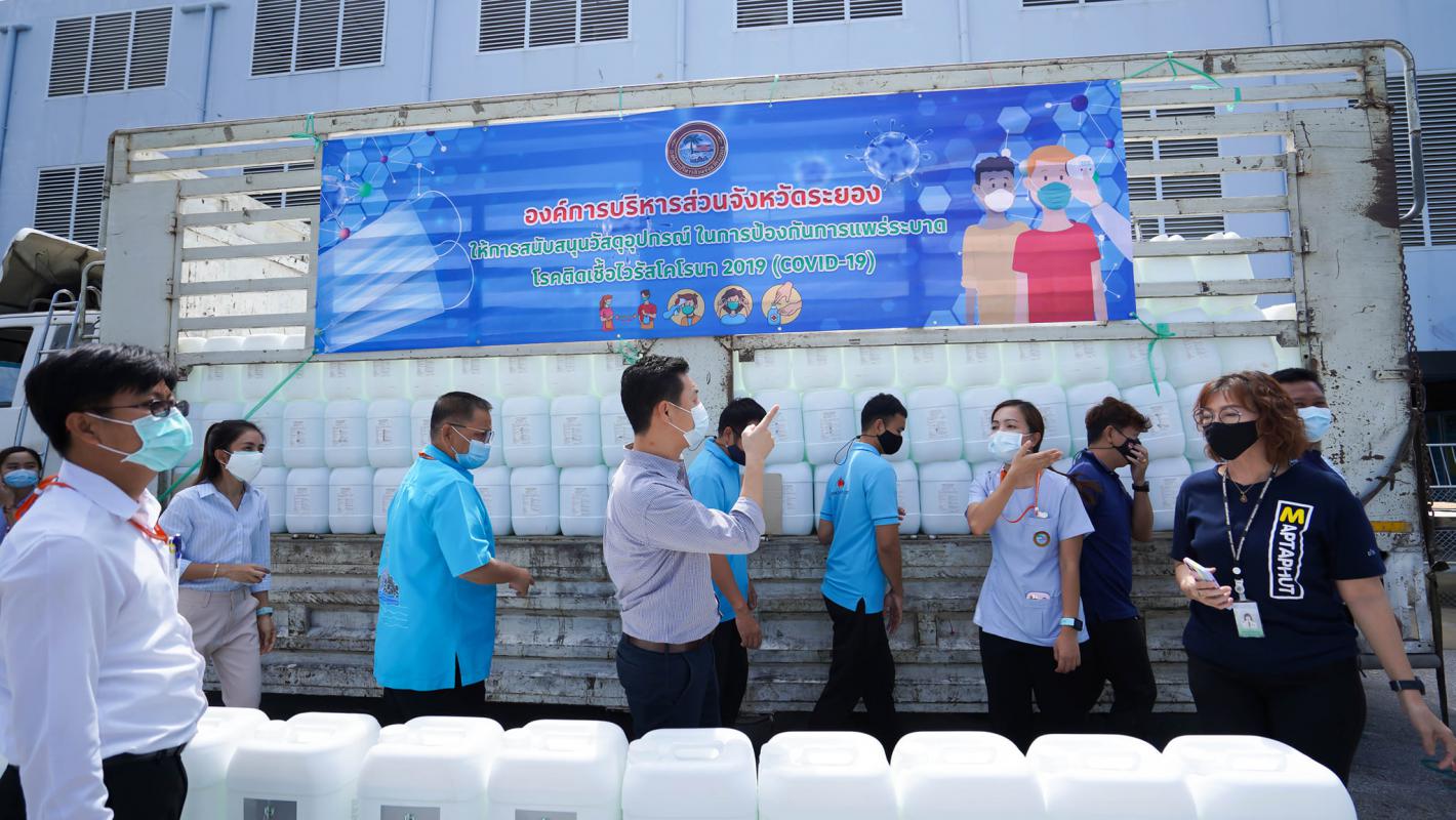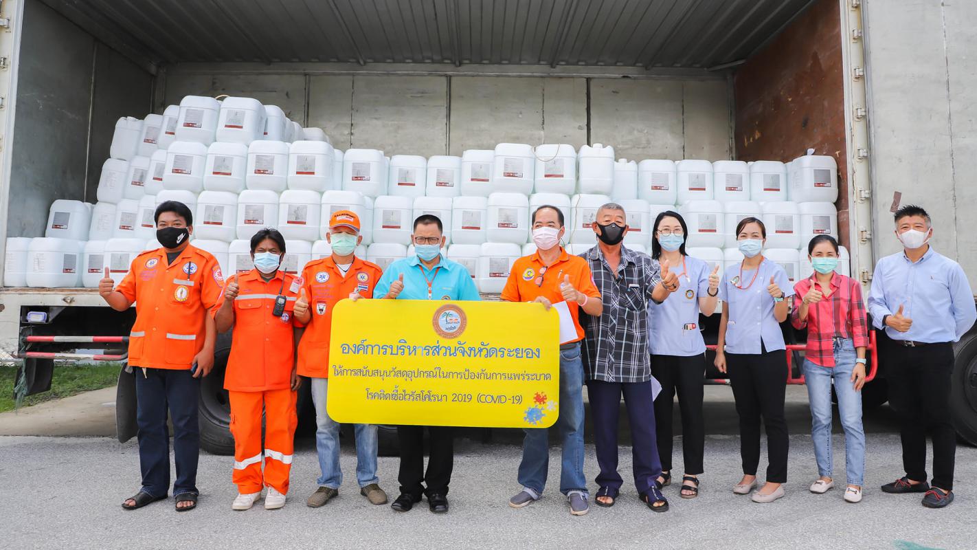 อบจ.ระยอง สนับสนุนน้ำยาฆ่าเชื้อและเจลแอลกอฮอล์ ให้ อปท.และมูลนิธิกู้ภัยในจังหวัดระยอง
