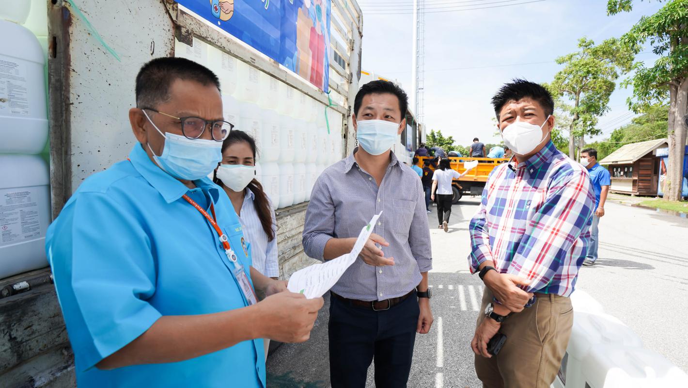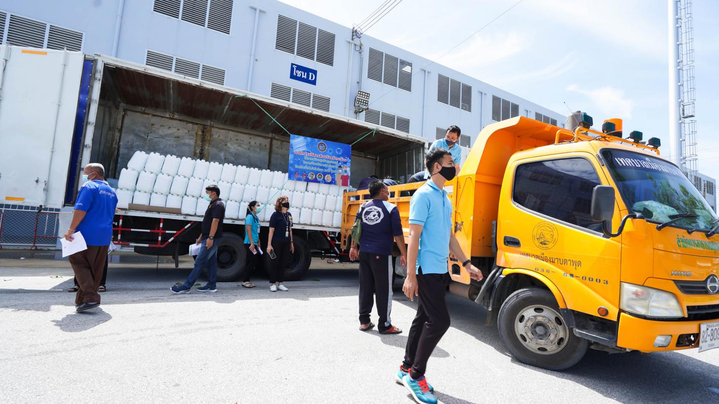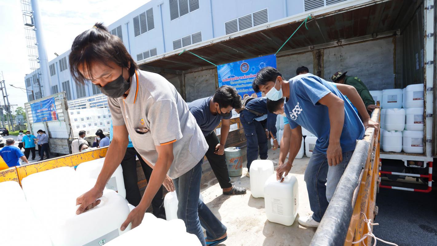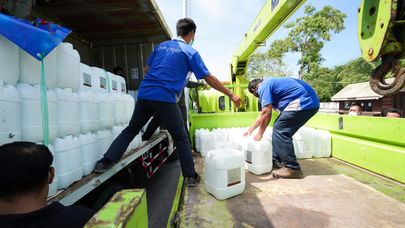 อบจ.ระยอง สนับสนุนน้ำยาฆ่าเชื้อและเจลแอลกอฮอล์ ให้ อปท.และมูลนิธิกู้ภัยในจังหวัดระยอง