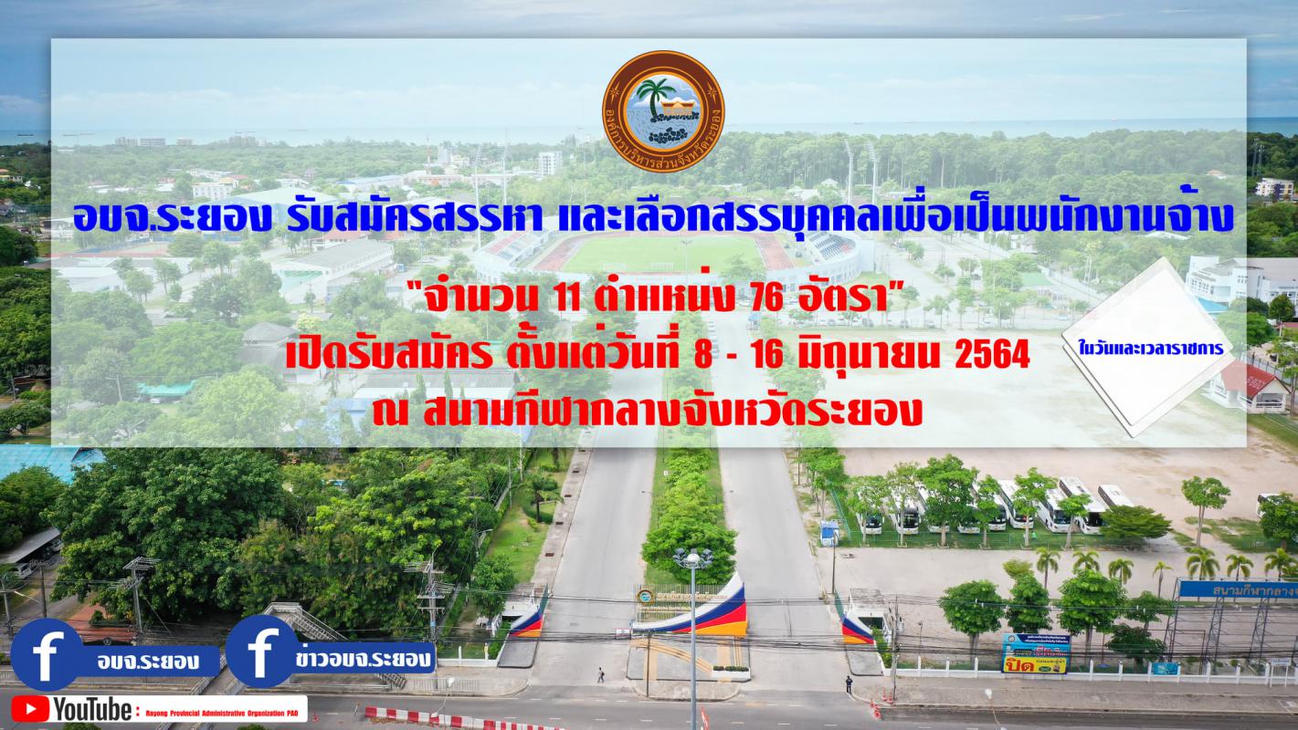 วันที่ 8 มิถุนายน 2564 เวลา 08.30 น. กองการเจ้าหน้าที่องค์การบริหารส่วนจังหวัดระยอง เปิดรับสมัครสรรหาและเลือกสรรบุคคลเพื่อเป็นพนักงานจ้าง สังกัดองค์การบริหารส่วนจังหวัดระยอง จำนวน 11 ตำแหน่ง 76 อัตรา ณ สนามกีฬากลางจังหวัดระยอง โดยเริ่มทำการรับสมัครตั้งแต่วันที่ 8-16 มิถุนายน 2564 ในวันและเวลาราชการ ทั้งนี้ สามารถสอบถามรายละเอียดเพิ่มเติมทางโทรศัพท์ หมายเลข 0-3861-7430 ต่อ 711 หรือดูรายละเอียดประกาศได้ที่ FB:อบจ.ระยอง เว็บไซ http://new.rayong-pao.go.th/
